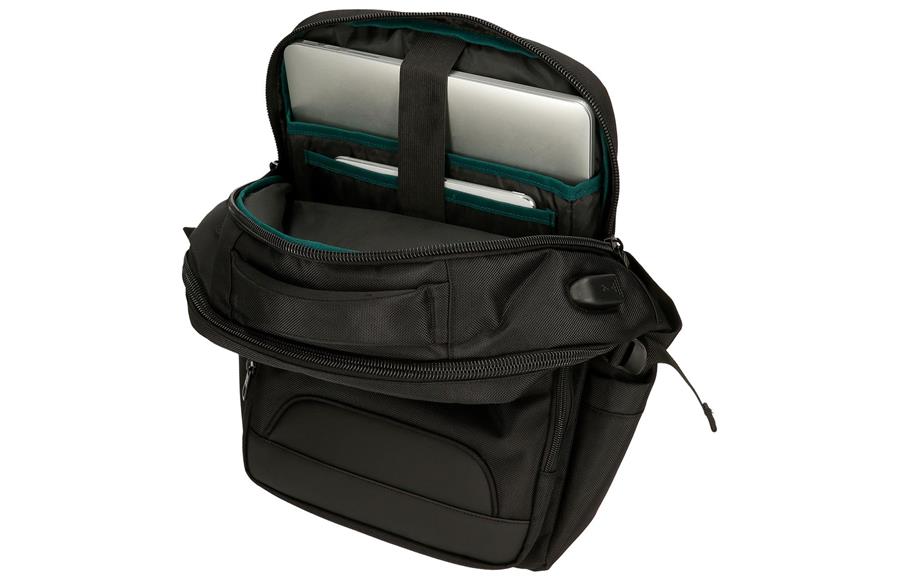 Ranac koji spaja poslovnu funkcionalnost i udobnost putovanja. U glavnom odeljku nalaze se dva zasebna džepa – postavljeni pretinac štiti laptop do 15,6 inča, dok je drugi namenjen tabletu ili dokumentima. Ugrađeni USB port s kablom brine da vam baterija nikad ne padne usred obaveza: jednostavno povežite eksternu bateriju iznutra i punite uređaje dok ste u pokretu. Prednji odeljak sadrži organizator sa više pregrada za kablove, olovke, punjače i sitne lične stvari, držeći sve uredno i pregledno. Široke, ergonomske i dobro postavljene naramenice ravnomerno raspoređuju težinu, a zadnja traka omogućava brzo kačenje na ručku kofera – idealno za aerodrome i vozove. Izrađen od visokokvalitetnog vodootpornog materijala, ranac pouzdano štiti elektroniku i dokumenta u svim vremenskim uslovima. Savršen izbor za dinamične profesionalce, studente i putnike koji žele da im tehnologija bude sigurna, a ruke slobodne.