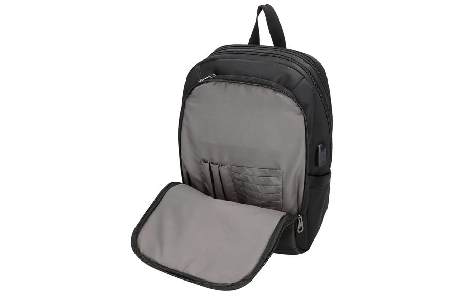 Ranac sa dva glavna odeljka uz posebno postavljene pregrade za laptop do 13,3 inča i tablet. Prednji džep sa rajsferšlusom sadrži dodatne pregrade za uredno čuvanje sitnica. Široke, ergonomski oblikovane i postavljene naramenice savršeno se prilagođavaju leđima, a zadnja traka omogućava lako pričvršćivanje na kofer tokom putovanja. Ugrađeni USB port sa kablom omogućava povezivanje na eksternu bateriju — za punjenje u pokretu, bez kompromisa.