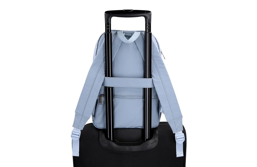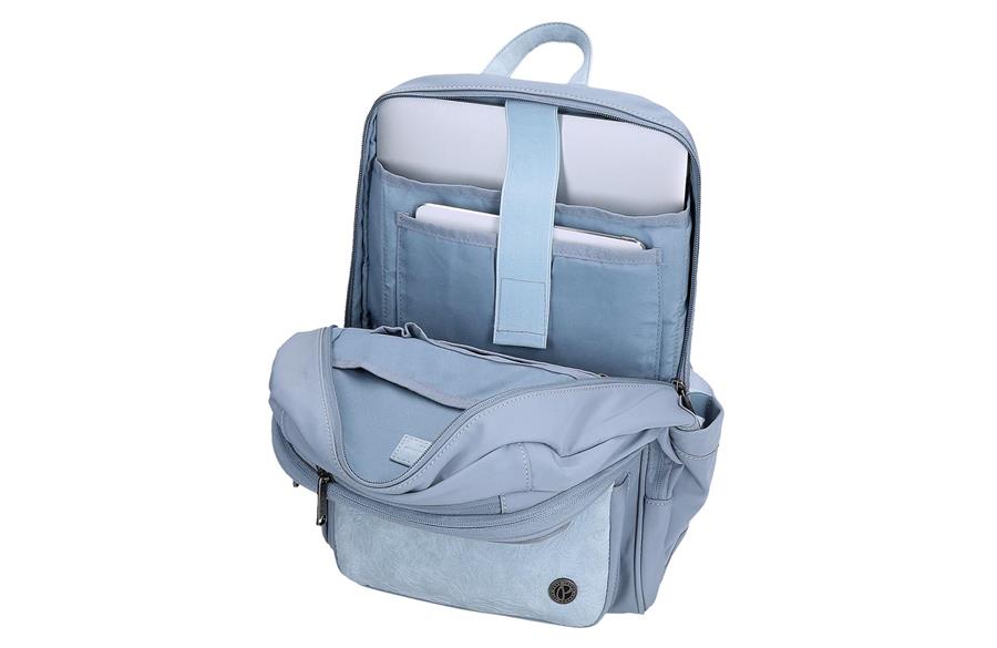 Ranac osmišljen za savremeni tempo života, kombinujući funkcionalnost, udobnost i moderan izgled. Izrađen od izdržljivog poliestera sa detaljima od eko kože, pruža pouzdanost i stil u svakodnevnim situacijama. Glavni odeljak sadrži dve postavljene pregrade — jednu za laptop do 13,3 inča i drugu za tablet — kao i dodatni džep sa rajsferšlusom za sigurnu organizaciju. Prednji džep sa zatvaračem omogućava brz pristup najvažnijim stvarima, dok široke, ergonomski oblikovane i postavljene naramenice pružaju maksimalnu udobnost. Zadnja traka omogućava lako pričvršćivanje na kofer, a integrisani USB port sa kablom omogućava povezivanje na eksternu bateriju — za punjenje u pokretu.