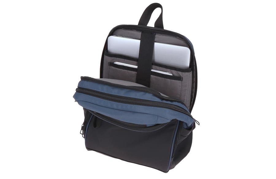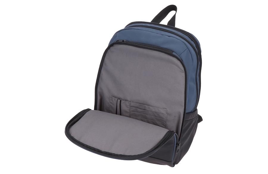 Praktičan i moderan ranac iz kolekcije Sail Up dizajniran je za dinamičan tempo svakodnevice. Ima dva glavna odeljka, sa posebnim prostorom za laptop do 13.3 inča i tablet, kao i integrisani USB port sa kablom za povezivanje sa eksternom baterijom – idealno za punjenje uređaja u pokretu. Prednji džep sa rajsferšlusom sadrži dve pregrade za uredno odlaganje sitnica i dodataka. Široke, ergonomske i postavljene naramenice pružaju dodatnu udobnost, dok zadnji kaiš omogućava lako postavljanje na kofer prilikom putovanja. Izrađen od vodootpornog materijala, ovaj ranac je pouzdan izbor za svaki dan, bez obzira na vremenske uslove.
