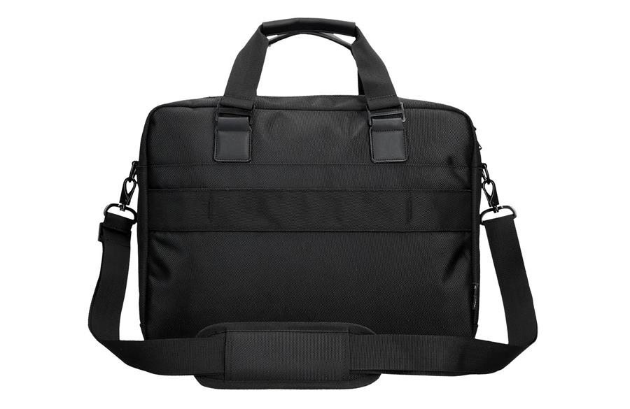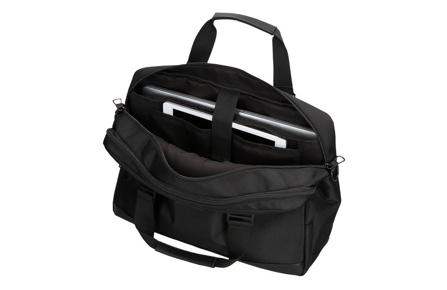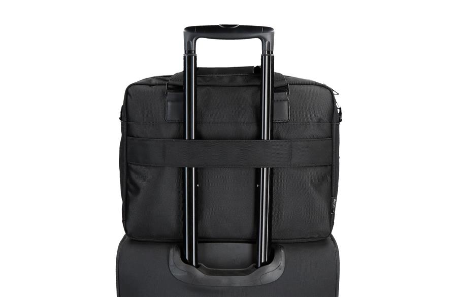 Torba za laptop poseduje dve pregrade: jednu sa specifičnim prostorom za laptop do 15,6 inča (35,5 cm visina x 26 cm širina x 3 cm dubina) i drugu za tablet. Druga pregrada ima veliki džep za čuvanje dokumenata i organizator sa mrežastim džepom na rajsferšlus, pregradom za jednu olovku, i dva dodatna džepa. Prednji džep sa rajsferšlusom idealan je za čuvanje manjih dodataka. Podesivi kaiš obezbeđuje dodatnu udobnost, a zadnja traka omogućava lako prilagođavanje koferu tokom putovanja.