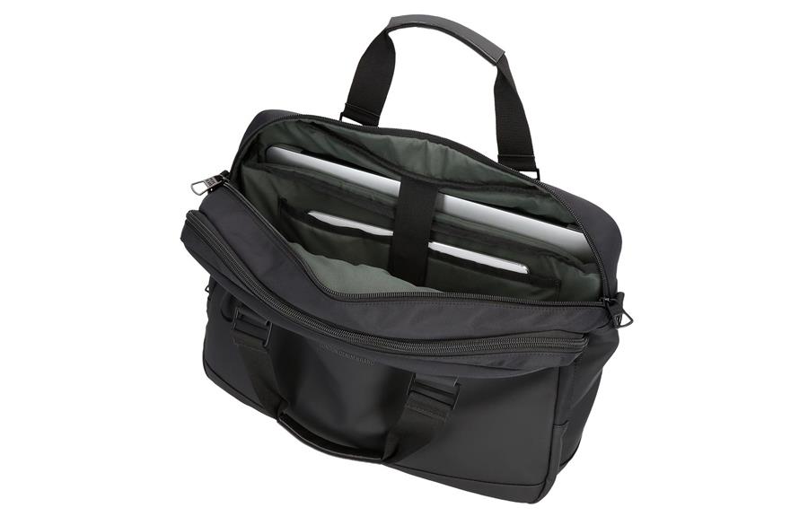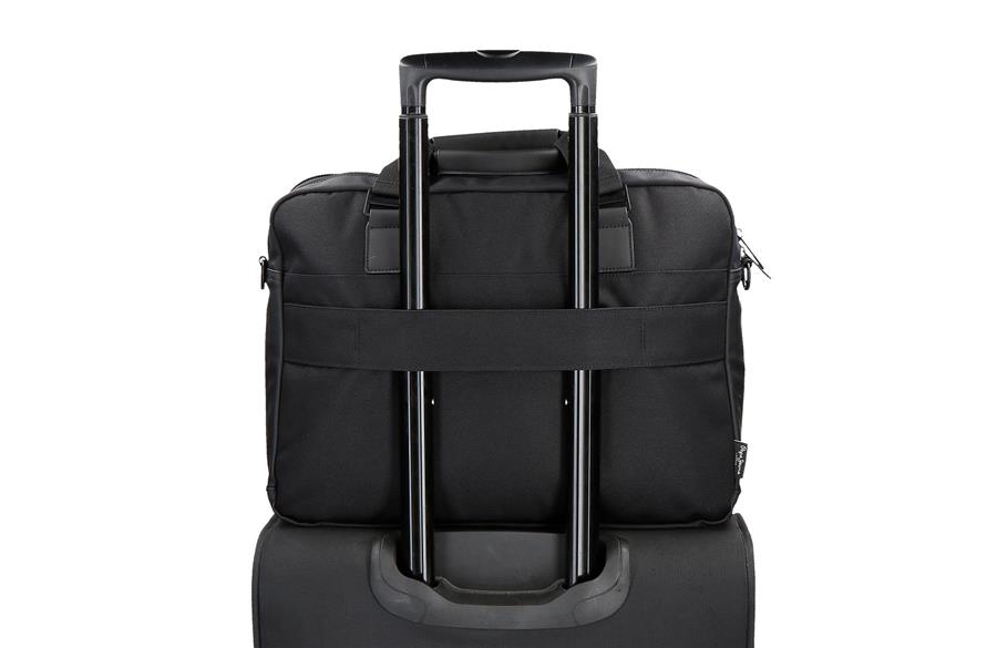 Poslovna torba ima dva prostrana odeljka: prvi za laptop do 15,6″ (35,5 × 26 × 3 cm) i tablet, dok drugi je veliki džep za dokumenta i praktični organizator sa mrežastim džepom na rajsferšlus, otvorom za olovku i još dve pregrade. Prednji džep sa rajsferšlusom čuva sitne dodatke na dohvat ruke. Podesivi kaiš obezbeđuje udobno nošenje preko ramena, a zadnja traka omogućava lako pričvršćivanje za kofer tokom putovanja.