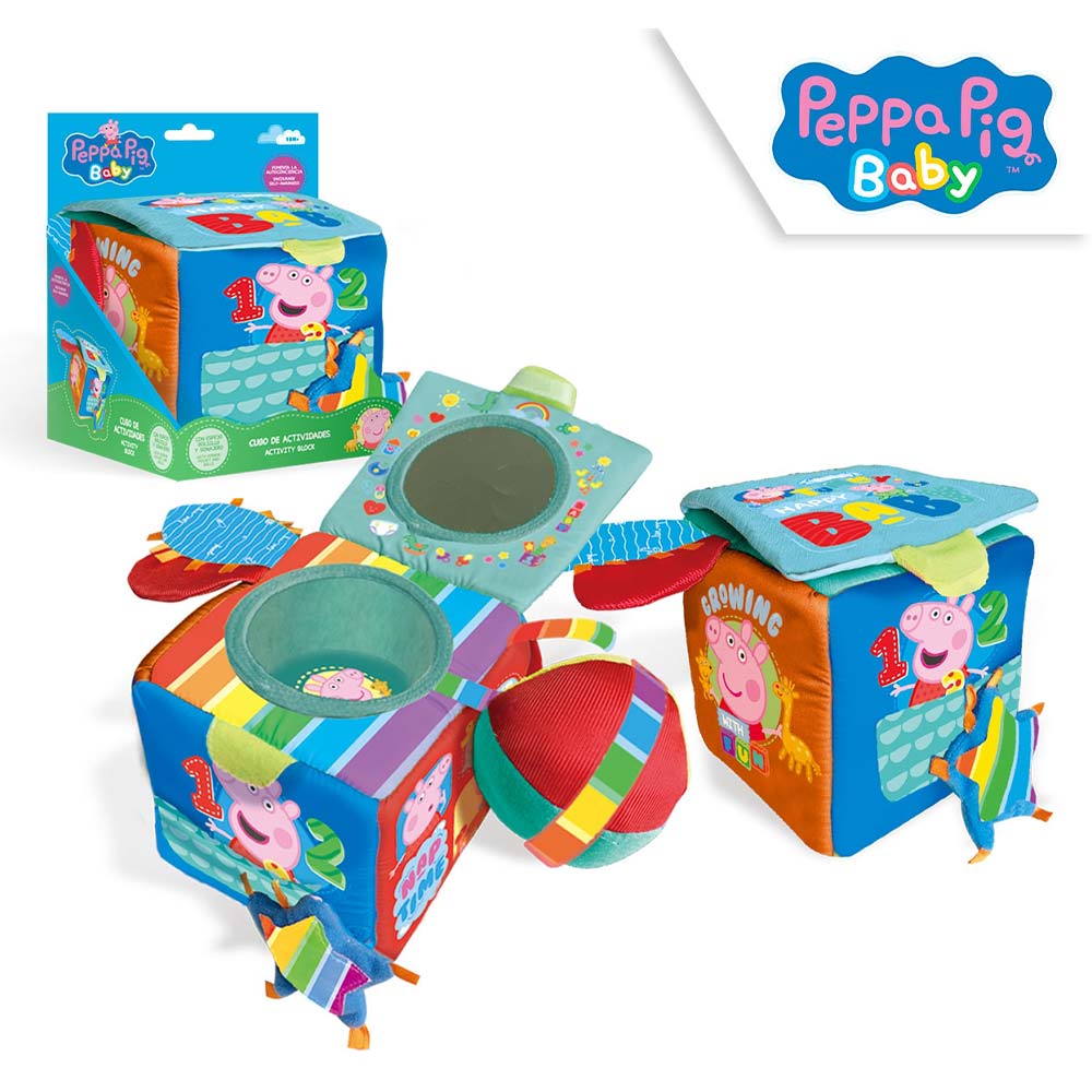 Pepa Prase plišana aktiviti kocka donosi puno zanimljivih elemenata koji podstiču razvoj fine motorike, koordinacije ruku i očiju, kao i vizuelne percepcije kod dece. Različite teksture, zvuci i boje podstiču radoznalost i omogućavaju mališanima da istražuju svet kroz igru! Kocka sadrži i ogledalce koje pomaže u razvijanju svesti o sebi, dok zvončići pružaju zvučnu stimulaciju i dodatno podstiču motoričke veštine. Savršen izbor za zabavu i učenje kroz igru!