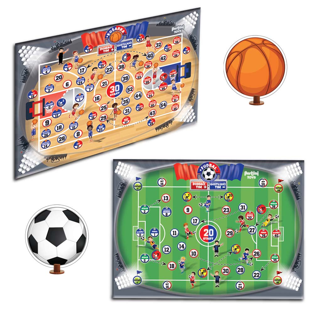 Postani šampion matematike kroz fudbal i košarku! Baci kockicu, saberi ili oduzmi, pronađi broj i boju, pomeri se po tabli i pokušaj da postigneš gol ili koš! Ova igra podstiče takmičarski duh, ali istovremeno te uči i kako da prihvatiš svaki ishod, pobedu i poraz – na pravi, sportski način! Kroz igru upoznaješ osnovna pravila fudbala i košarke, dok istovremeno vežbaš sabiranje i oduzimanje. Svaki potez je prilika da razmišljaš brzo, pametno planiraš i odneseš pobedu! Skeniranjem QR koda sa kutije aktivira se video i audio sadržaj sa detaljnim objašnjenjem pravila igre.