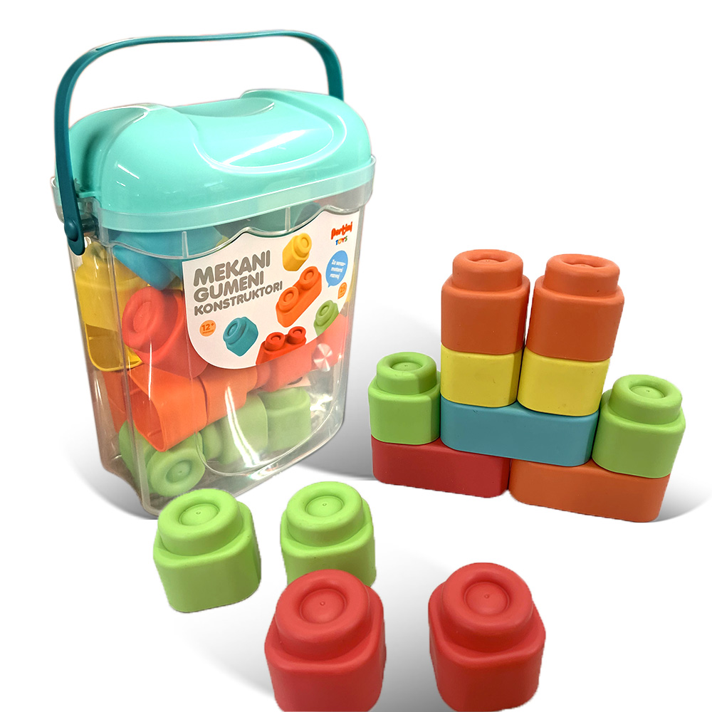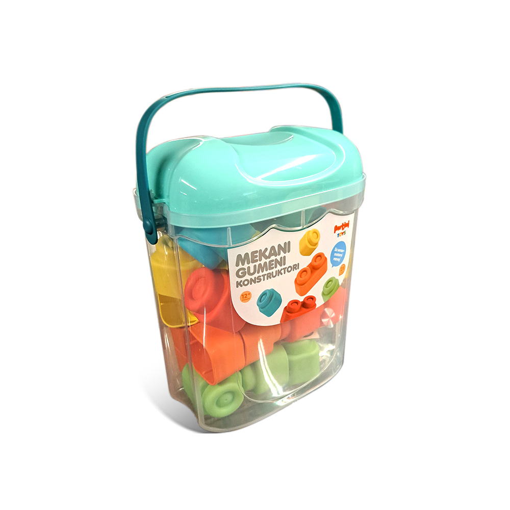 Pertini set od 25 mekanih konstruktora u kofici koji sadrži dve vrste konstruktora različitih oblika i veličine. Sigurne za upotrebu, lako se čiste i mogu se prati na max temperaturi od 30 stepeni.
