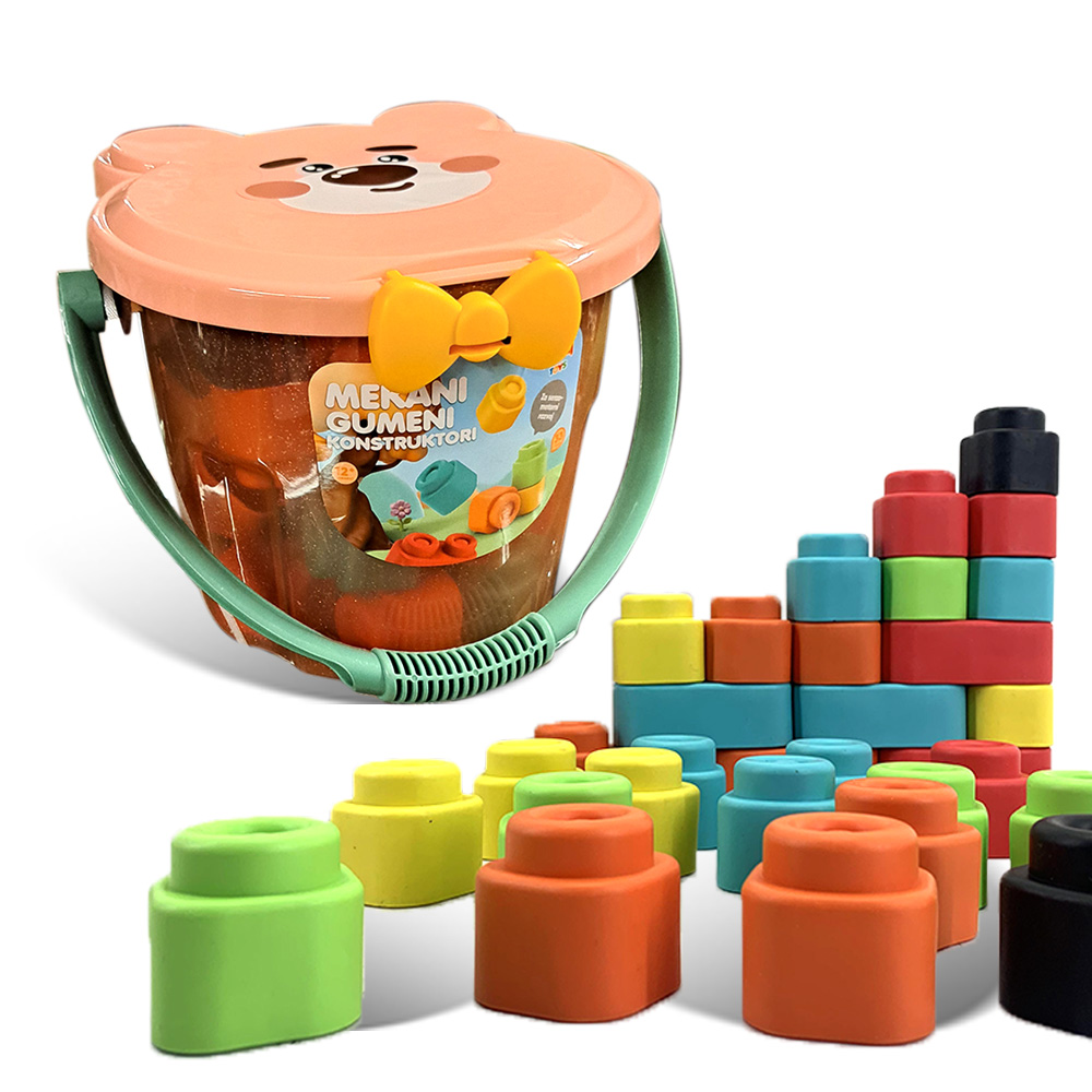 Pertini set od 33 mekana gumena konstruktora u kofici sadrži dve vrste konstruktora različitih oblika i veličine. Sigurni za upotrebu, lako se čiste i mogu se prati na max temperaturi od 30 stepeni.