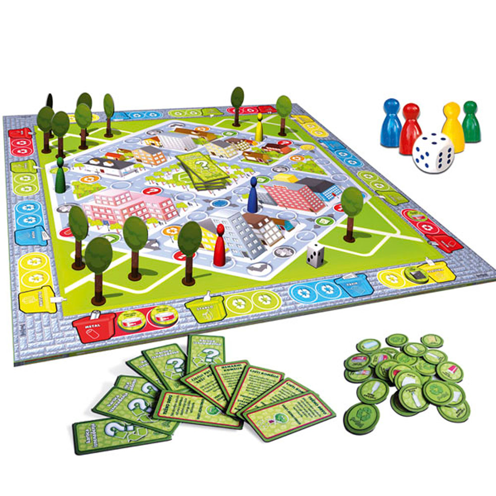 Društvena igra koja decu edukuje za deo procesa recikliranja – sortiranja. Sadrži: mapu grada sa obeleženim otpadom, kantama za reciklažu i tematskim poljima, figure, kartice sa zadacima, kockicu, drveće koje se sadi kao nagrada. Dim.kutije: 30x7x30 cm. Dimenzije table: 58×58 cm.