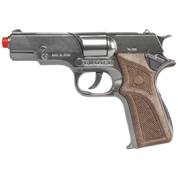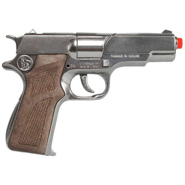 Nakon pritiska gornjeg okidača, pištolj se otvara na pola ,i čini šaržer za 8 kapisla pristupačnim. Igračka je pogodna za decu stariju od 3 godine.Korišćeni materijal:metal i plastika,zdravstveno su ispravni i bezbedni za igru.