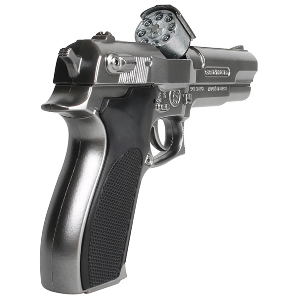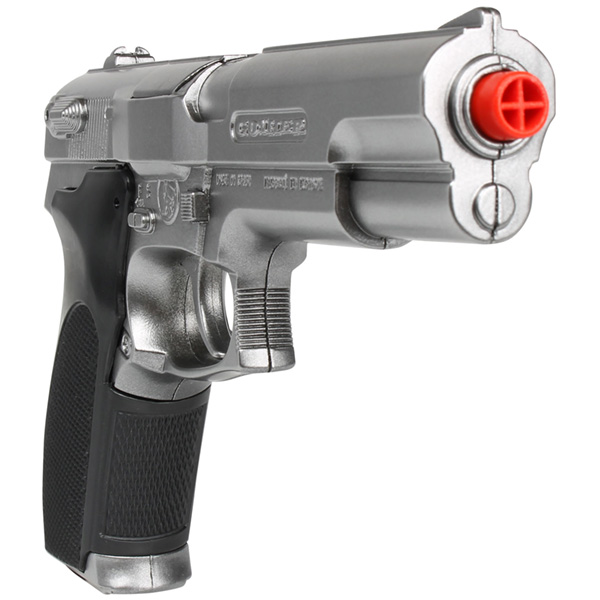 Nakon pritiska gornjeg okidača, pištolj se otvara na pola,i čini šaržer za 8 kapisla pristupačnim. Igračka je pogodna za decu stariju od 3 godine.
