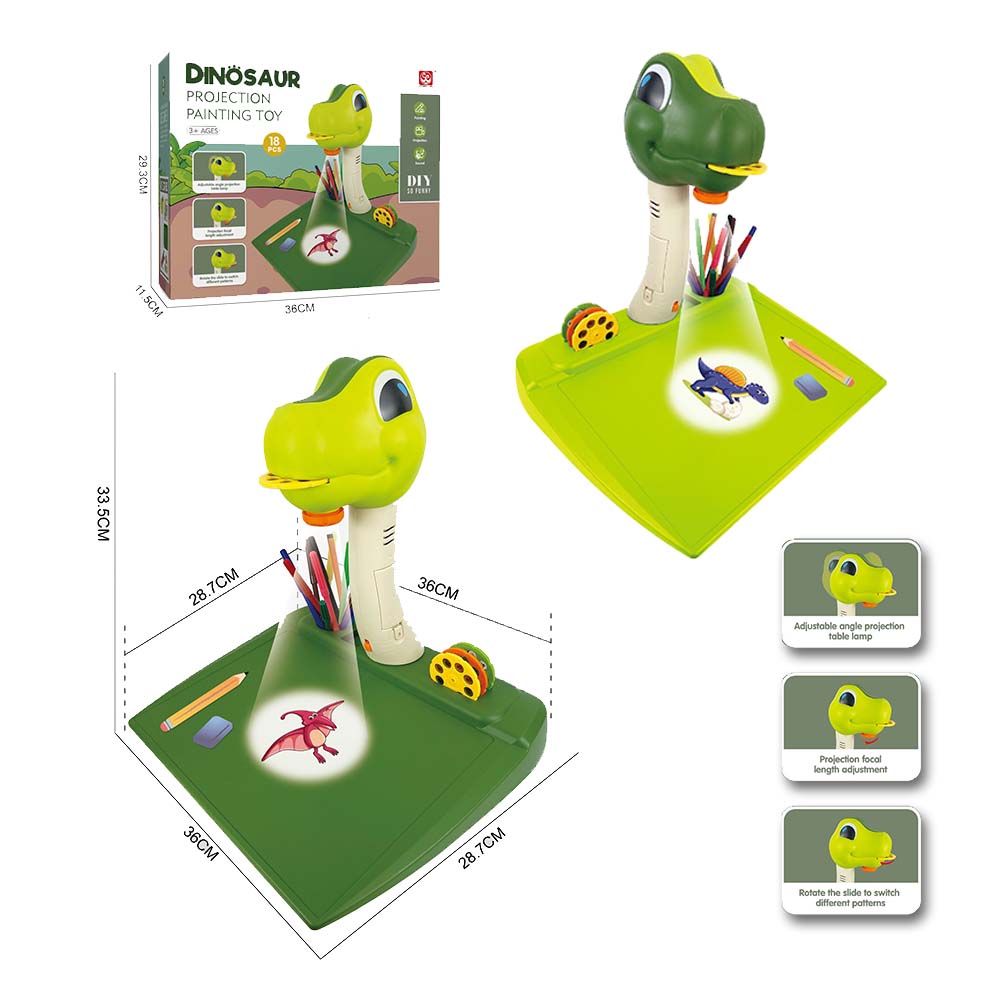 Zabavni dino-projektor pretvara crtanje u igru! Uključi lampu, projektuj sliku na papir i pomoću šablona jednostavno je isprati i nacrtati.