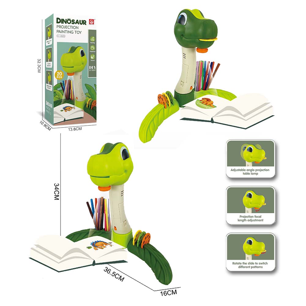 Zabavni dino-projektor pretvara crtanje u igru! Uključi lampu, projektuj sliku na papir i pomoću šablona jednostavno je isprati i nacrtati.