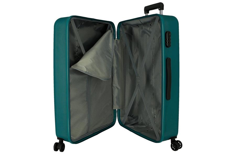 Sva tri kofera imaju četiri točkića sa rotacijom od 360°, koji omogućavaju glatko i stabilno kretanje u svim pravcima. Teleskopska ručka podesiva po visini obezbeđuje jednostavno i udobno upravljanje. Unutrašnjost kofera je funkcionalno raspoređena radi lakšeg pakovanja: jedna strana sa pregradom i rajsferšlus zatvaračem a druga sa druga strana sa elastičnim trakama za fiksiranje garderobe Koferi su opremljeni bočnom kombinacionom bravom sa trocifrenim kodom, koja povećava sigurnost prtljaga tokom putovanja. Bočna ojačanja dodatno doprinose stabilnosti i dugotrajnosti.