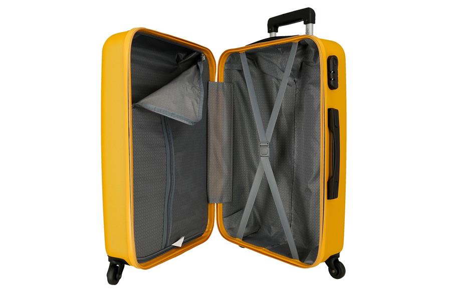 Sva tri kofera imaju četiri točkića sa rotacijom od 360°, koji omogućavaju glatko i stabilno kretanje u svim pravcima. Teleskopska ručka podesiva po visini obezbeđuje jednostavno i udobno upravljanje. Unutrašnjost kofera je funkcionalno raspoređena radi lakšeg pakovanja: jedna strana sa pregradom i rajsferšlus zatvaračem a druga sa druga strana sa elastičnim trakama za fiksiranje garderobe Koferi su opremljeni bočnom kombinacionom bravom sa trocifrenim kodom, koja povećava sigurnost prtljaga tokom putovanja. Bočna ojačanja dodatno doprinose stabilnosti i dugotrajnosti.