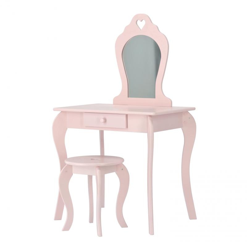 Roze sto za šminkanje sa ogledalom + stolica