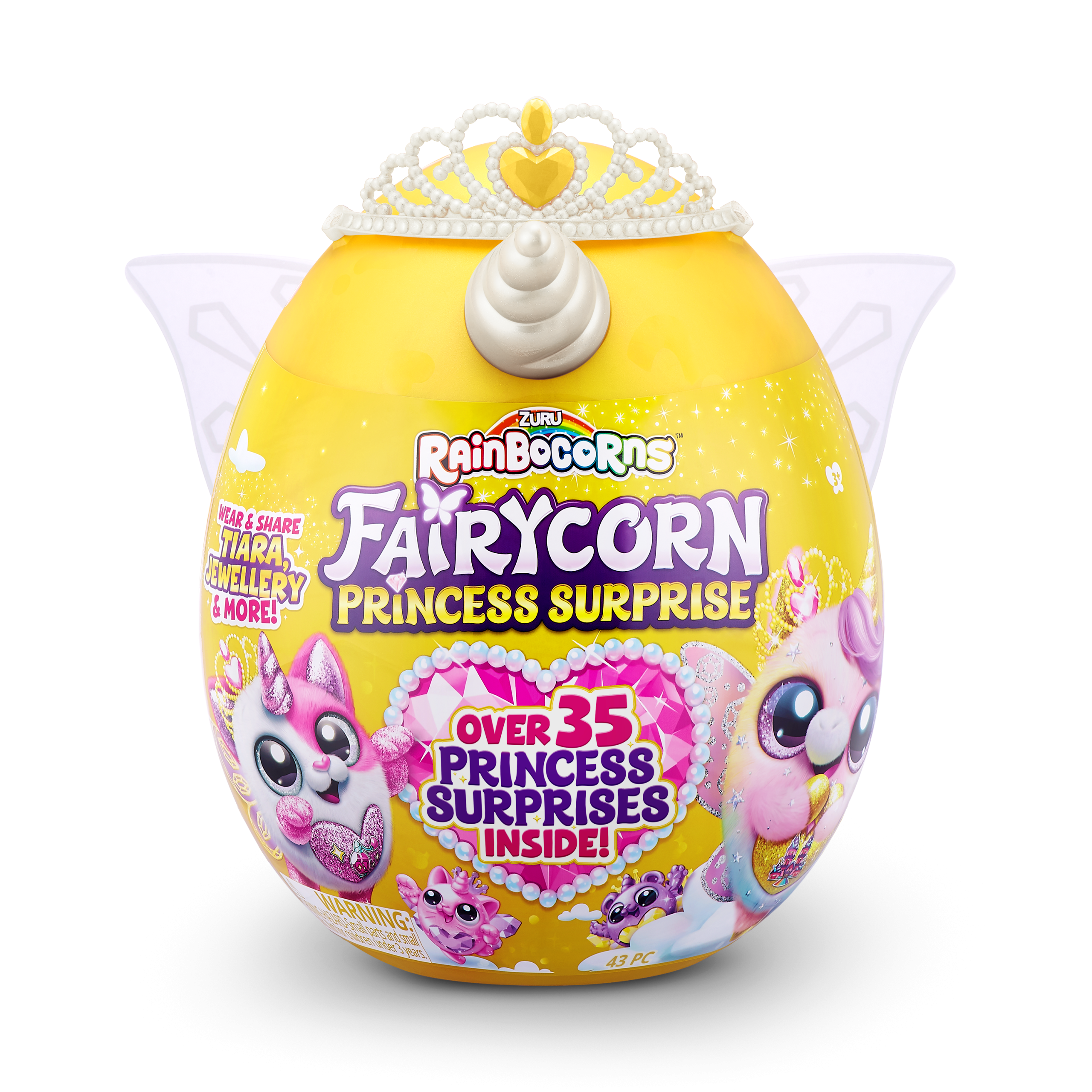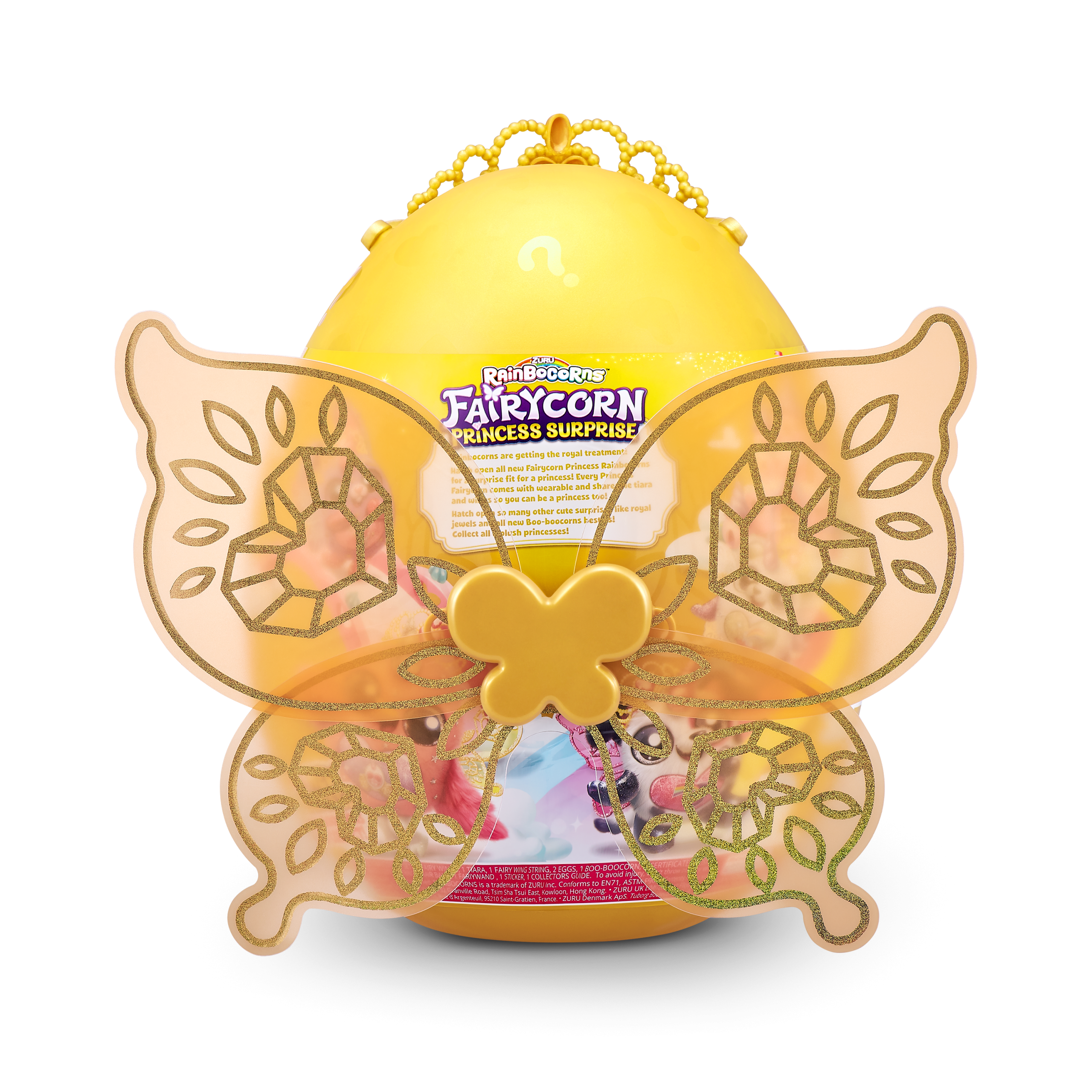 Rainboville ima i kraljevsku porodicu –upoznaj Fairycornse, medene plišance plave krvi! Rainbocorns Fairycorn jaje iznenađenja krije mnoga uzbudljiva iznenađenja, čak njih 35! U ovom posebnom izdanju jajeta iznenađenja pronaći ćeš prava vilinska krila, tijaru i Rainbocorns verziju dragog kamenja.