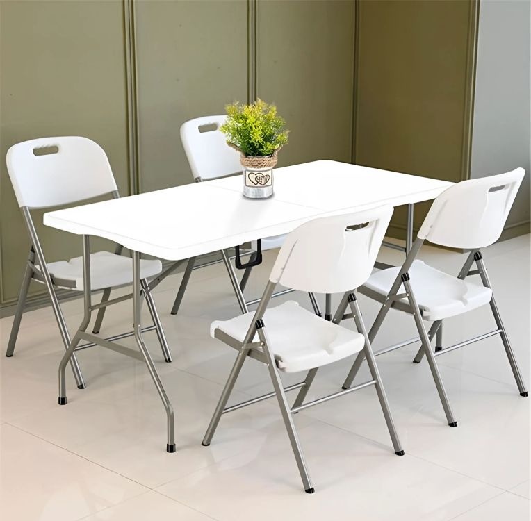 Set od 2 sklopivih stolica white Set od 2 sklopivih stolica u beloj boji savršeno je rešenje za svakodnevnu upotrebu ili dodatna sedišta prilikom okupljanja. Izrađene od izdržljivog HDPE materijala, ove stolice su otporne na habanje i lako se održavaju, čineći ih idealnim izborom za unutrašnje i spoljašnje prostore. Dizajn sklopivih stolica omogućava jednostavno sklapanje i odlaganje, što ih čini savršenim za putovanja, piknike ili kada su vam potrebna dodatna mesta za sedenje. Minimalistički stil i moderna belina ovih stolica lako se uklapaju u svaki enterijer, dodajući svetlu i prostranu atmosferu vašem prostoru. Lagane i praktične, ove stolice su odličan izbor za sve koji traže kombinaciju udobnosti i funkcionalnosti.