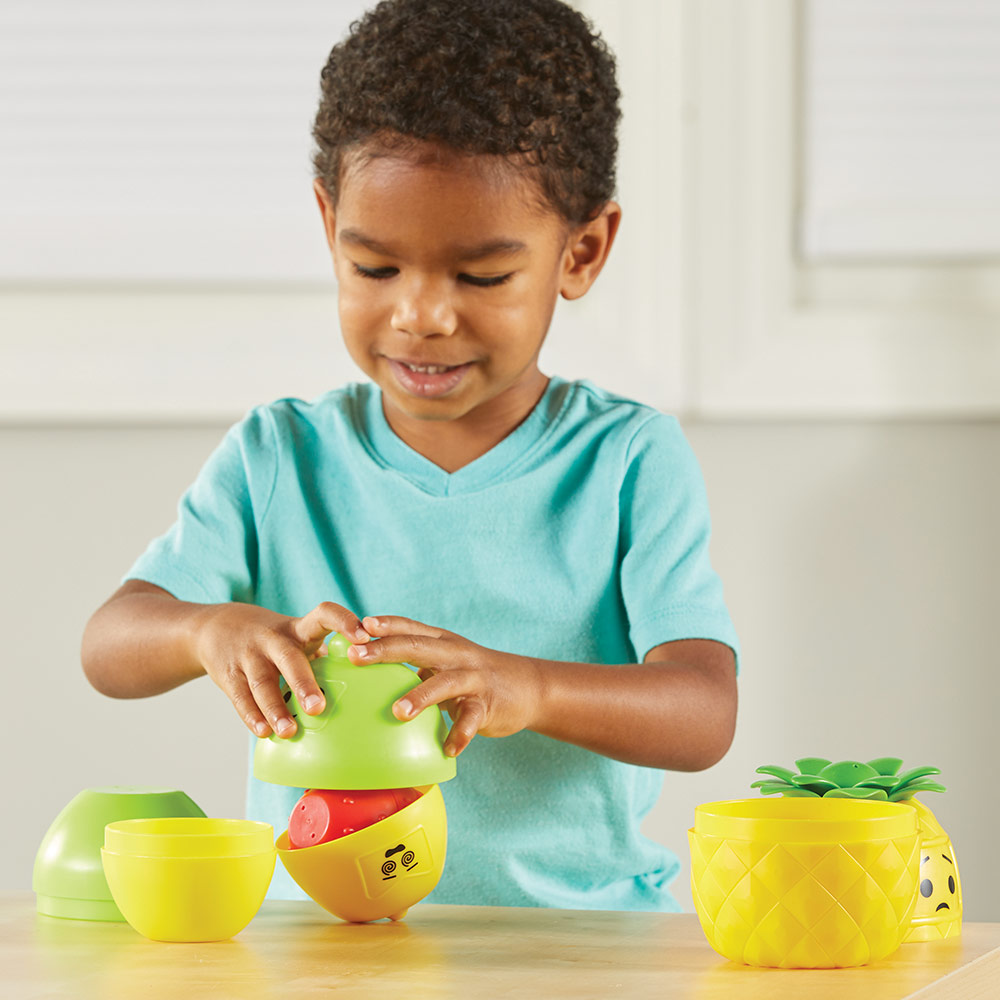 Set voća- osecanja pomaže deci da razumeju svoje emocije! Mališani uče osnovne socijalno-emocionalih veština i razvijaju fine motoričke veštine dok otkrivaju ovih 5 prijateljskih voćkica. Dvostrano lice svake voćke donosi 10 jedinstvenih emocija – sreća, tuga, ljutlja… Različita tekstura voća podstiče senzornu igru.