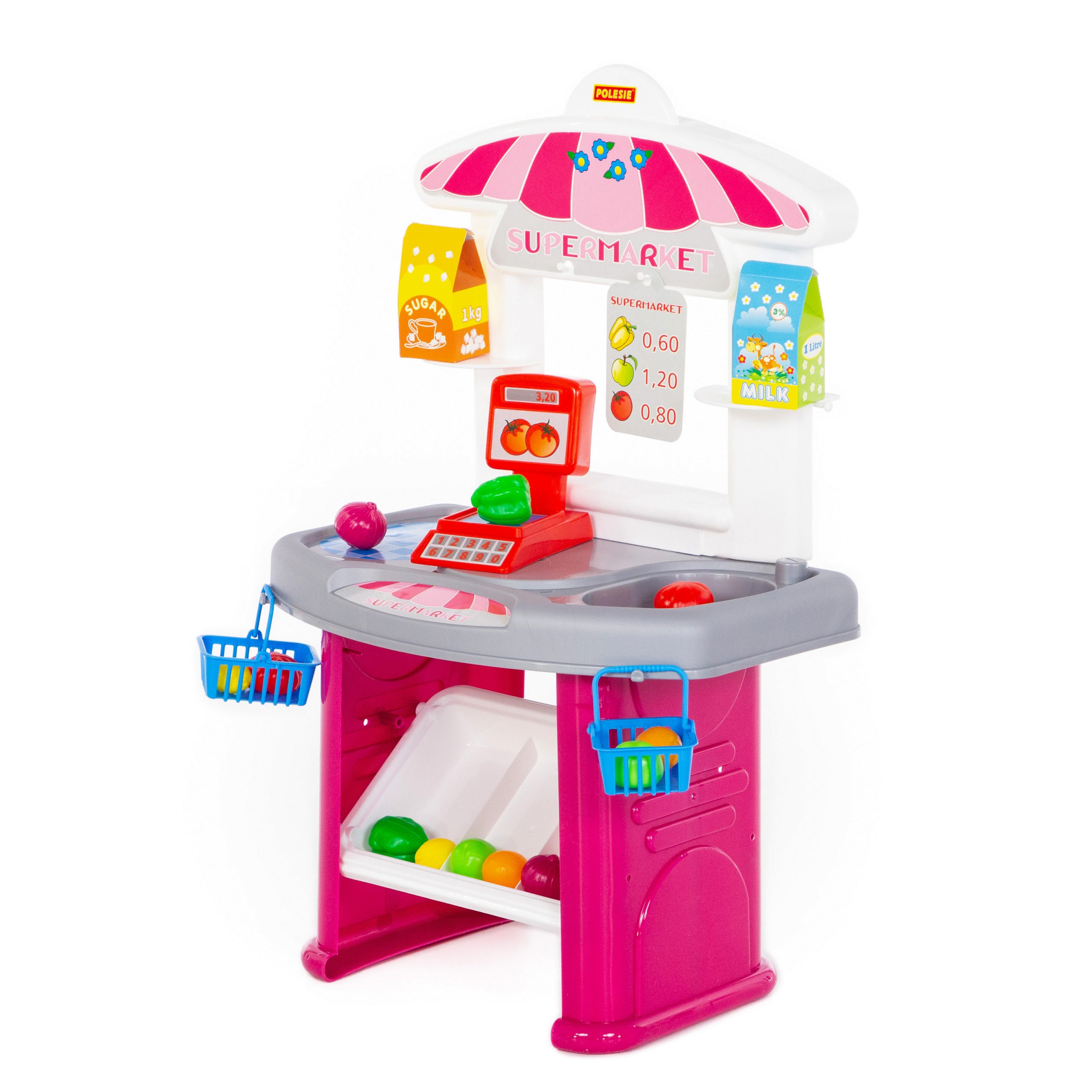 Proizvodi se mogu vagati na vagi i staviti u korpu za kupovinu. Igra sa setom „Supermarket“ naučiće će dete da samostalno kupuje, igrajući uloge prodavca i kupca; izračunati troškove kupovine i izdvojiti budžet koji je na raspolaganju za kupovinu. Dimenzije 435х130х487 sklopljeno : 470х270х645 mm(sa korpom); 405х270х645 (bez korpe)