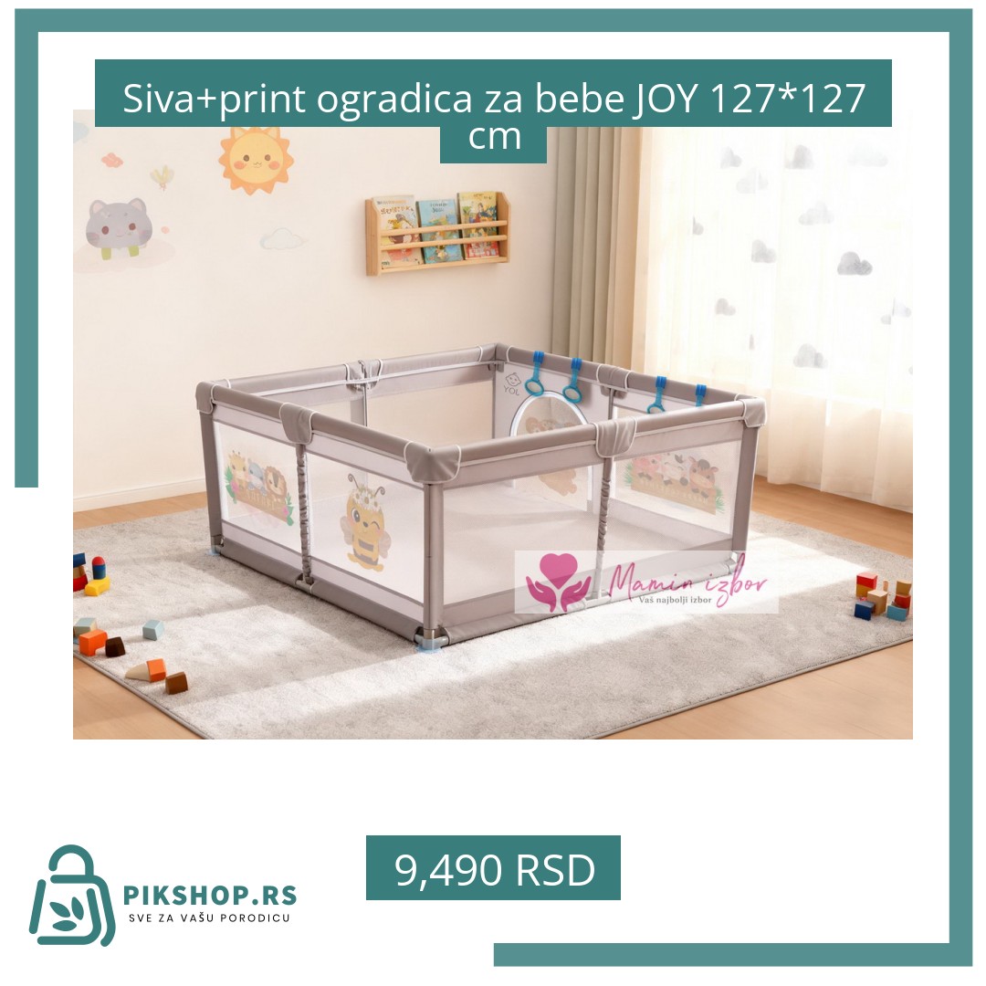 Budite prvi koji će napisati recenziju za „Siva+print ogradica za bebe JOY 127*127 cm“ Одустани од одговора
