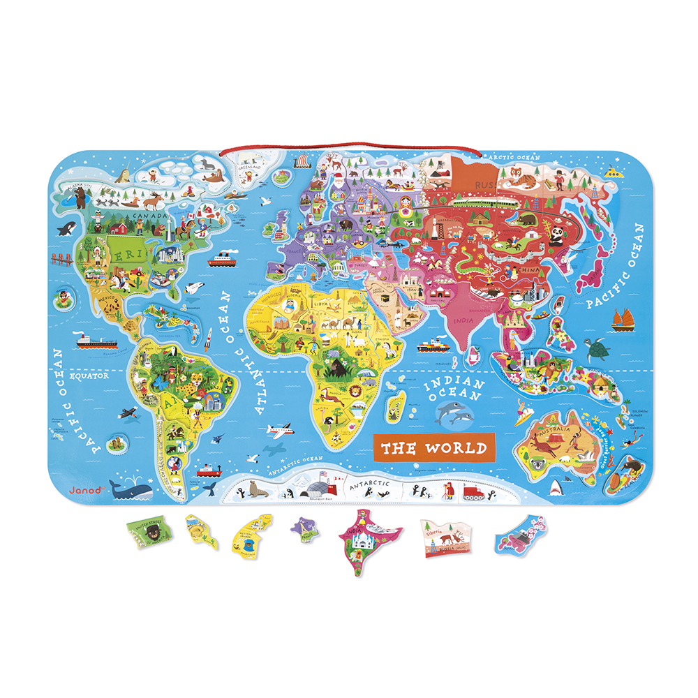 Oko sveta u 92 magneta! Zabavan i edukativan način otkrivanja planete. Svaki magnet predstavlja državu ili region sveta, sa svojim imenom, glavnim gradom i ilustracijom karakterističnom za taj deo sveta. Velika magnetna tabla pokazuje svet sa njegovim kontinentima i okeanima: boja koja se koristi za svaki region pomaže vam da pronađete svoje mesto. Zabavite se stavljajući svaku zemlju na svoje mesto i imaćete divnu mapu sveta koju možete da okačite na zid.