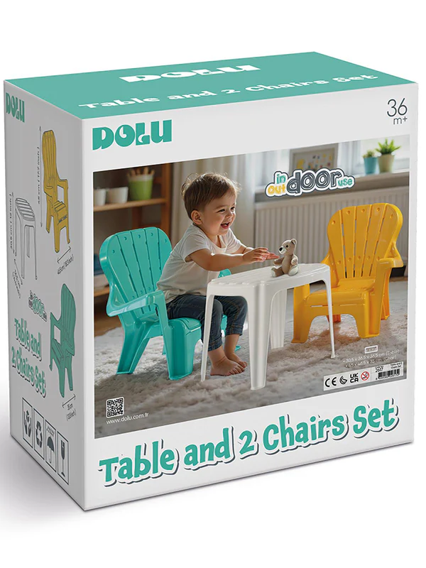 Praktican sareni deciji set koji se sastoji od jednog stola i dve stolice,idealan za igru,crtanje,ucenje i uzinu.Set je izradjen od kvalitetne i cvrste plastike,bezbedan za decu sa zaobljenim ivicama radi dodatne sigurnosti.