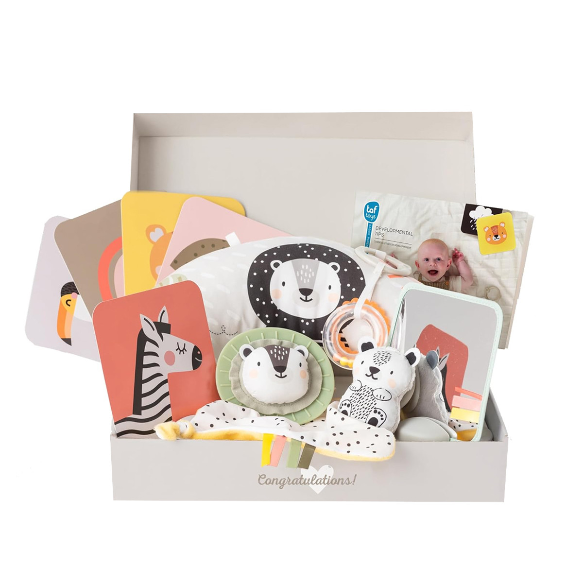 Taf Toys set za novorođenče nudi 12 razvojnih igračaka u jednom pakovanju. Posebno osmišljen za novorođenčad, ovaj komplet sadrži pažljivo odabrane razvojne igračke koje pomažu bebi da od prvih dana razvija osnovne veštine – na zabavan i zdrav način. Idealan je i kao poklon. Sadrži čak 12 proizvoda za razvoj novorođenčeta u jednoj kutiji, uz prateći vodič sa savetima za razvoj i uputstvima za korišćenje svake igračke.