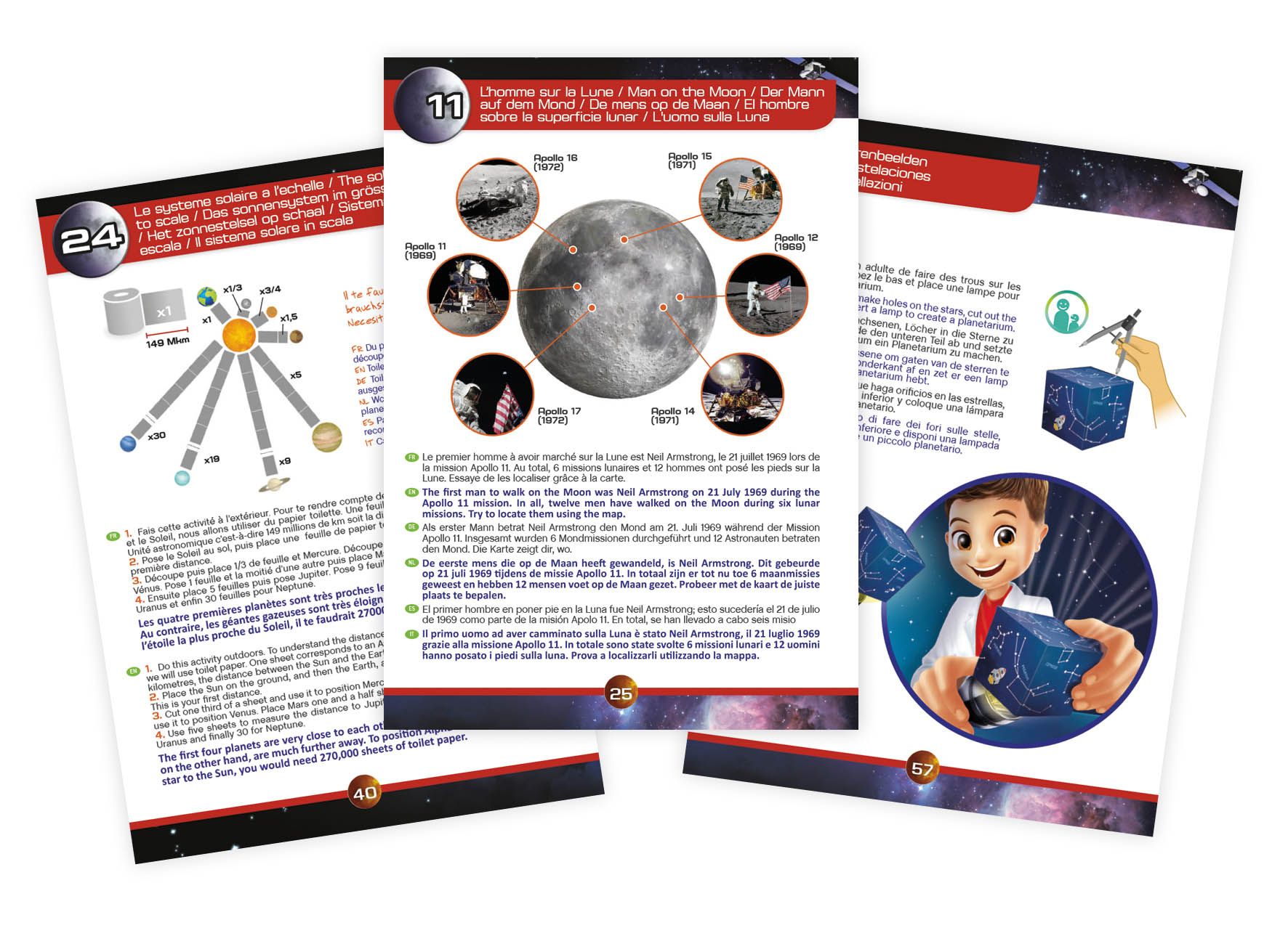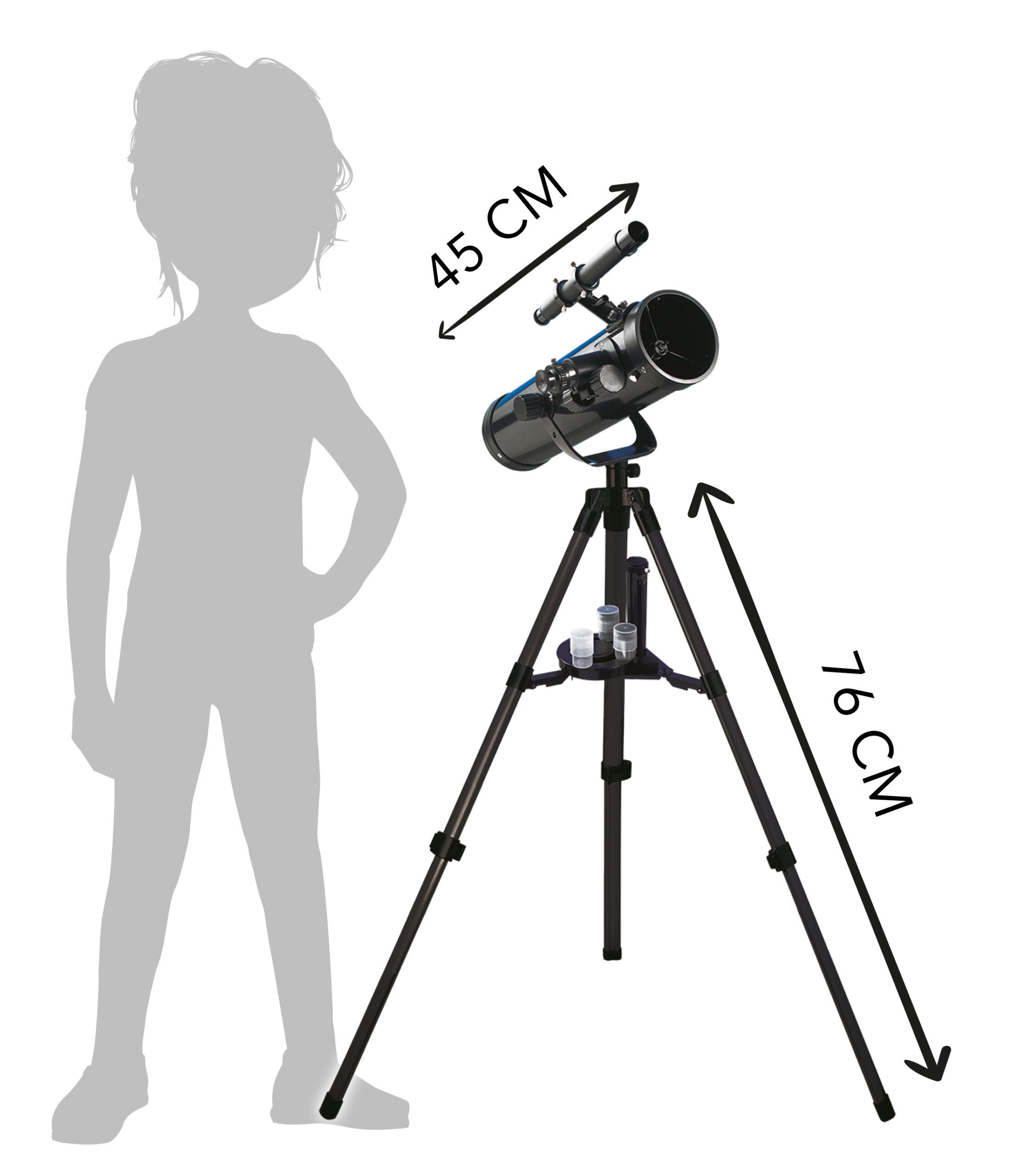 Set uključuje teleskop prilagođen deci i čak 50 edukativnih aktivnosti koje vode dete kroz osnove posmatranja neba. Kroz vođene zadatke, deca uče kako da koriste teleskop, prepoznaju planete, Mesec i zvezde, kao i osnovne pojmove iz astronomije.