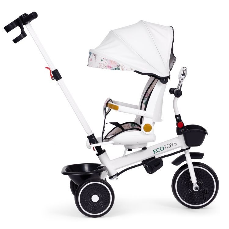 Tricikl za decu sa rotirajućim sedištem, gurajućim rukohvatom i tendom white, ECOTOYS