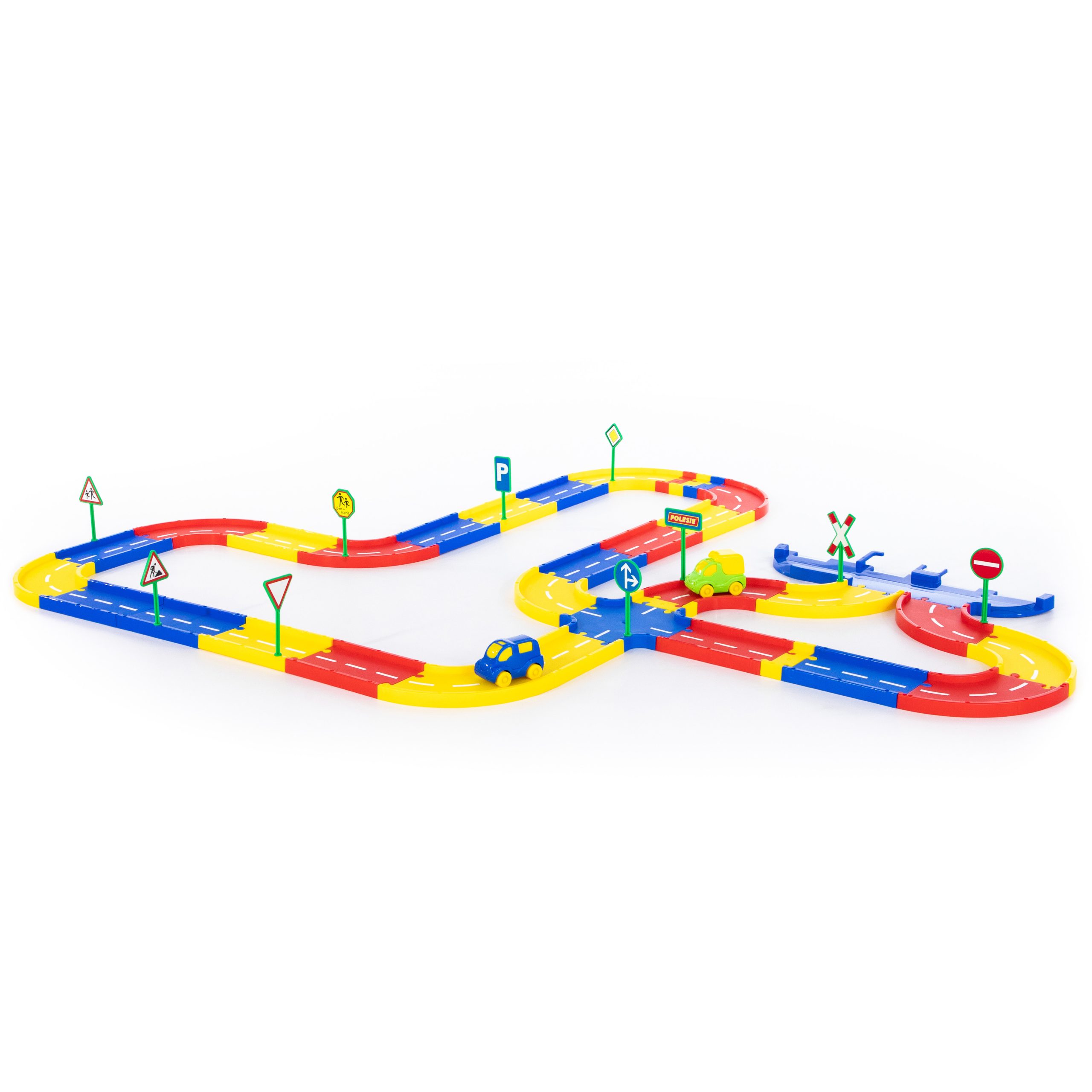 Ovaj bogati set za proširenje puta nudi malim vozačima odličnu zabavu. Jednostavan sistem plug-in omogućava mnogo različitih opcija podešavanja. Omogućuje deci da na zabavan način nauče nesto novo o saobraćaju, da razvijaju preciznost pokreta, razvijaju prostornu orjentaciju i socijalne veštine kroz interakciju sa drugarima Dimenzija 455х150х365mm