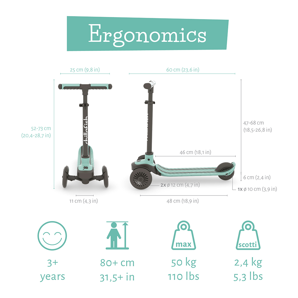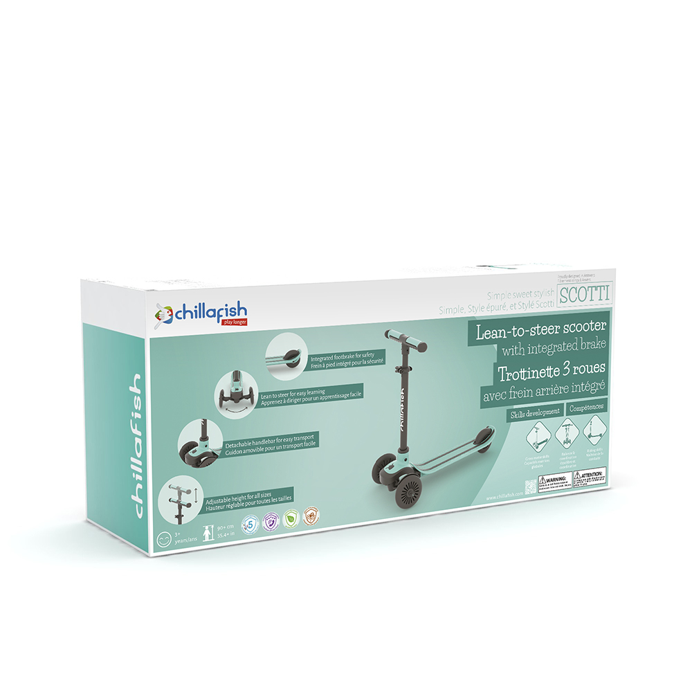 Predstavljamo vam Chillafish Scotti Mint trotokat, vrhunsku vožnju za buduće avanturiste! Ovaj inovativni trotokat za decu uzrasta od 3 godine i više redefiniše igru na otvorenom svojom kombinacijom bezbednosti, stila i jednostavnosti korišćenja. Da li je vaš mališan spreman za samostalno istraživanje? Scotti-jev intuitivni mehanizam za upravljanje pruža prirodan i stabilan način deci da razviju ravnotežu i koordinaciju, što ga čini savršenim za njihova prva iskustva sa vožnjom trotineta. Njegova prepoznatljiva dvostruka daska sa integrisanom kočnicom nudi vrhunsku kontrolu i brzu snagu zaustavljanja, obezbeđujući bezbrižnost roditeljima. Napravljen lagano sa visokokvalitetnim ABEC-5 točkovima, garantuje glatke i radosne vožnje. Pored toga, podesiva ručka bez alata čini transport i skladištenje lakim. Zapalite njihovu avanturu i gledajte ih kako samouvereno krstare ovim jednostavnim, lepim, zabavnim i kvalitetnim trotinetom od Chillafish-a! . Intuitivni mehanizam za upravljanje . Stilska dvostruka daska . Integrisani sistem kočnice . Podesiva ručka bez alata . Visokokvalitetni ABEC-5 točkovi . Lagan i prenosiv dizajn