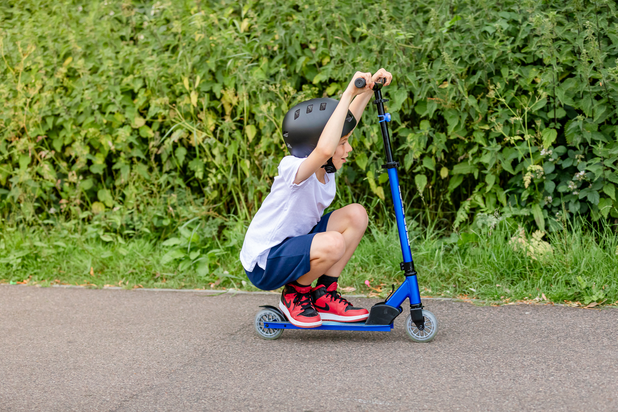 Kompaktan, sportski i lagan, naš Deluks trotinet sa dva točka je spreman da se nosi sa svakim vozačem koji je već stekao samopouzdanje balansiranjem. Praktična alternativa vožnji bicikla, Deluks trotinet sa dva točka se upravlja kao bicikl, ali je praktično sklopiv i ultra kompaktan, tako da aktivna vožnja ne može biti lakša! Njegov super lagan okvir i upravljač u stilu čopera omogućavaju vrhunsku okretnost i preciznost prilikom vožnje trotoarima ili parkovima. Uz to, lako se nosi kući jer se ručke upravljača i trotinet sklapaju za nekoliko sekundi. Glatki anodizirani okvir koji sija na suncu, ali je otporan na bleđenje i rđanje. Precizni upravljač čini upravljanje i kontrolu lakim iskustvom za vozače, omogućavajući vozačima da se fokusiraju na razvoj koordinacije tela i ravnoteže. Lako sklapanje i prenosivost, sklopite upravljač i rukohvate bez ikakvih komplikovanih mehanizama kako biste se prebacili iz parka u automobil za nekoliko sekundi.