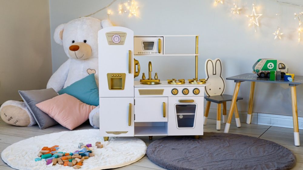 Velika drvena kuhinja za decu white and gold
