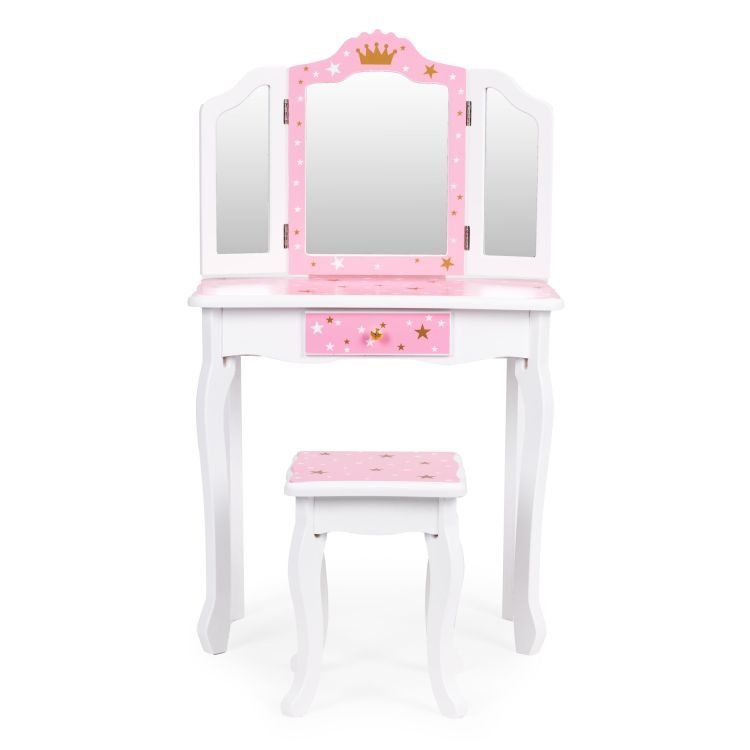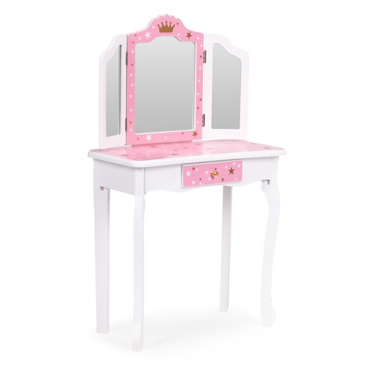 Veliki dečiji toaletni sto za devojčice sa trostrukim ogledalom, stolicom i fiokom, ECOTOYS