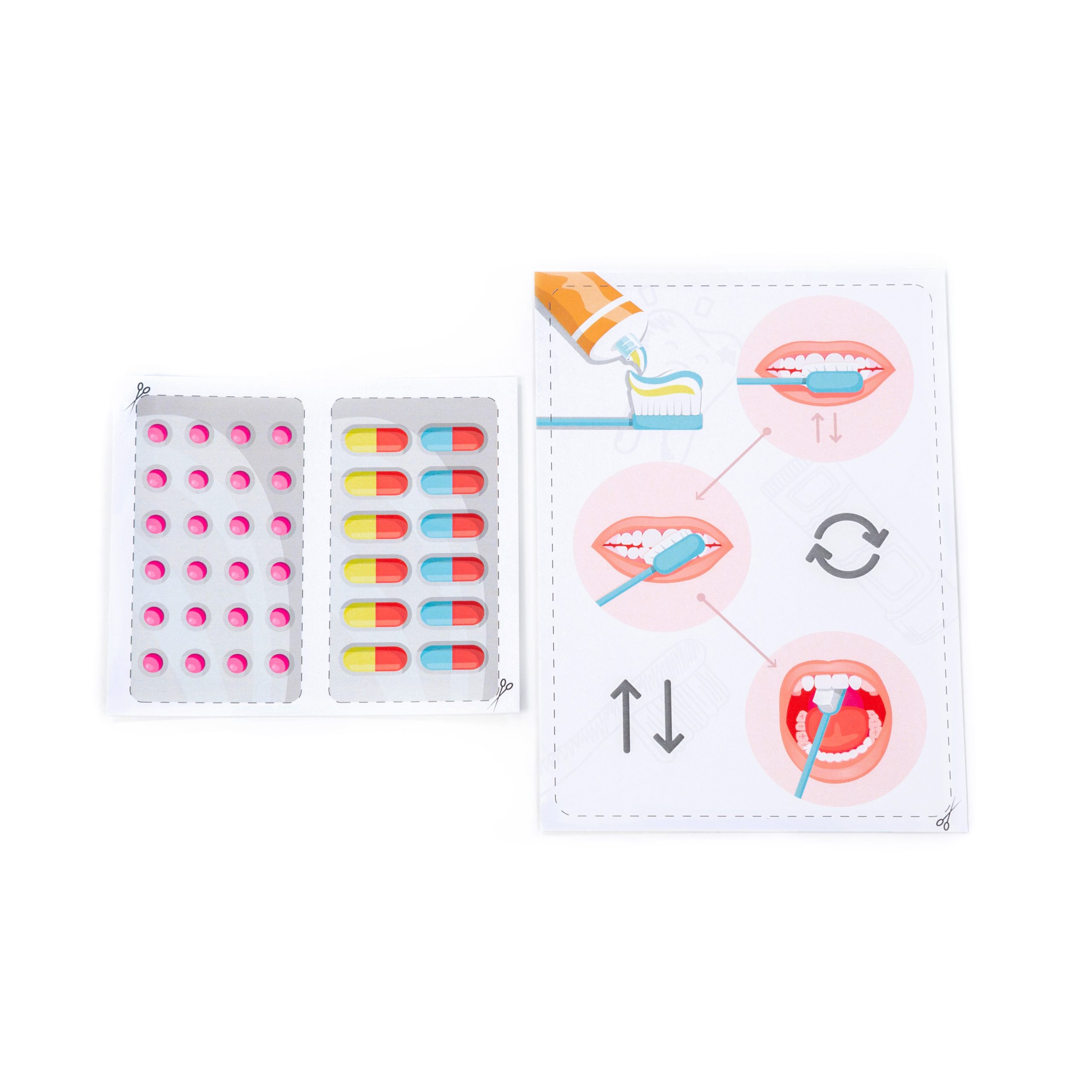 Komplet stomatologa će vam omogućiti da kreirate sopstvenu stomatološku ordinaciju kod kuće! Svi alati su pogodno smešteni u posebnom kućištu sa ručkom. U kompletu ćete naći 19 predmeta, uključujući termometar, špric, posudu za špriceve, četkicu za zube, pastu za zube, makaze, pincete, pincetu, skalpel, kuku, bušilicu, ogledalo, vilicu, zub, medicinsku kapu, lekarsku značku, kutiju za pilule, komplet pilula (papir) i karticu sa korisnim informacijama o tome kako pravilno brinuti o ustima. Dimenzije 270х95х235mm