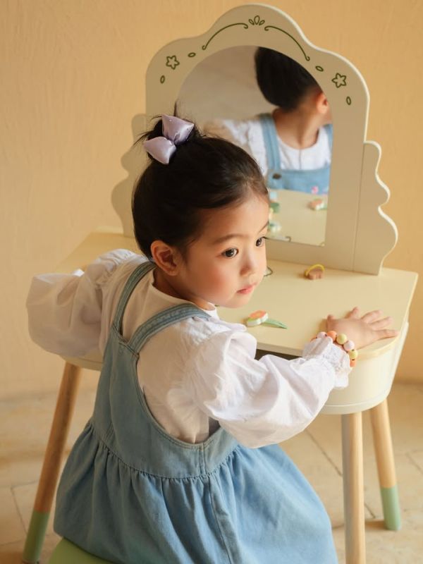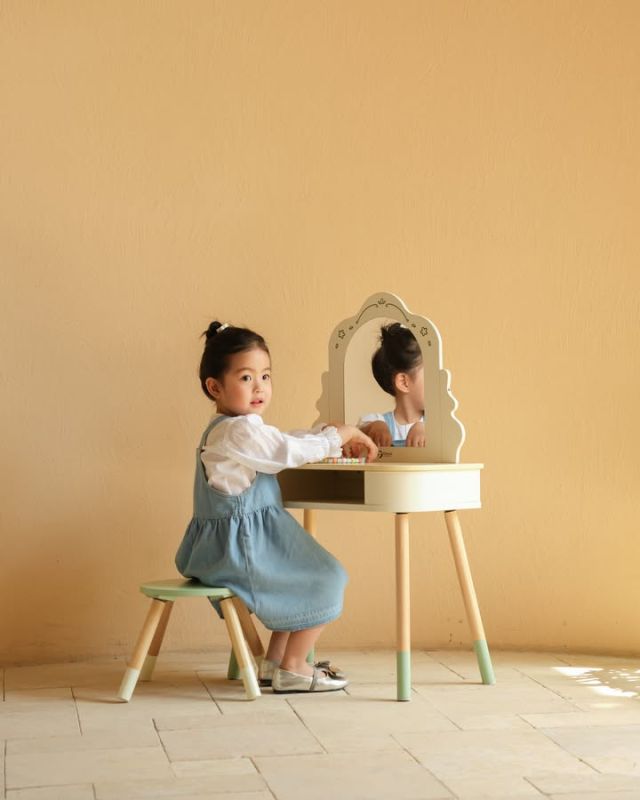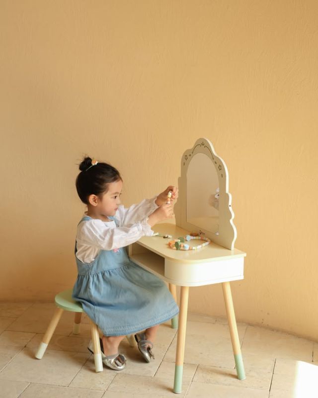 Ovaj drveni salon lepote za devojčice dolazi sa pažljivo odabranim detaljima koji igru čine realističnom i zanimljivom:
