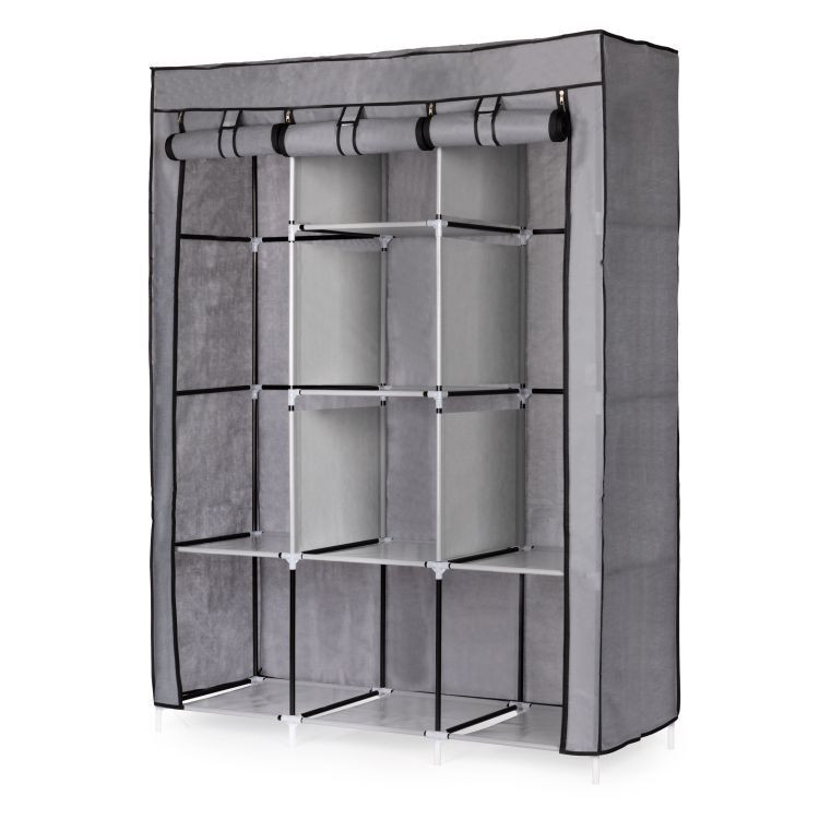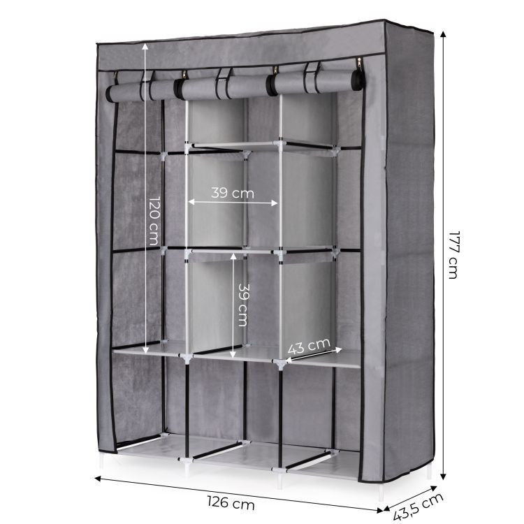 Dobrodošli u svet organizacije i stila uz naš platneni garderober brenda ModernHome. Ovaj elegantni komad nameštaja ne samo da zadovoljava estetske standarde, već pruža i izuzetnu funkcionalnost za vaš prostor. Metalna konstrukcija ovog garderobera, upotpunjena izdržljivim prakticnim policama i polipropilenskim konektorima, osigurava čvrstinu i stabilnost čak i kada je potpuno popunjen. Ovaj detalj čini naš garderober pouzdanim rešenjem za čuvanje i organizaciju različitih vrsta garderobe, obuće, posteljina, peskira i još mnogo toga. Dve horizontalne sipke pružaju odličan prostor za odlaganje košulja, sakoa, kaputa i jakni. Ovaj praktičan raspored omogućava lako pretraživanje i pristup vašoj odeći, čineći svakodnevne aktivnosti bržim i jednostavnijim. Dodatno, garderober je opremljen platnenom rolo zavesom koja štiti vaše stvari od vlage i prašine. Ova zavesa ne samo da čuva vašu garderobu, već i doprinosi celokupnom izgledu garderobera, pružajući mu sofisticiran i moderni izgled. ModernHome platneni garderober je vaš idealan saputnik za očuvanje reda i elegancije u vašem domu. Pogodan za raznovrsnu upotrebu, ovaj garderober savršeno se prilagođava vašim potrebama i doprinosi organizovanom i lepom prostoru.