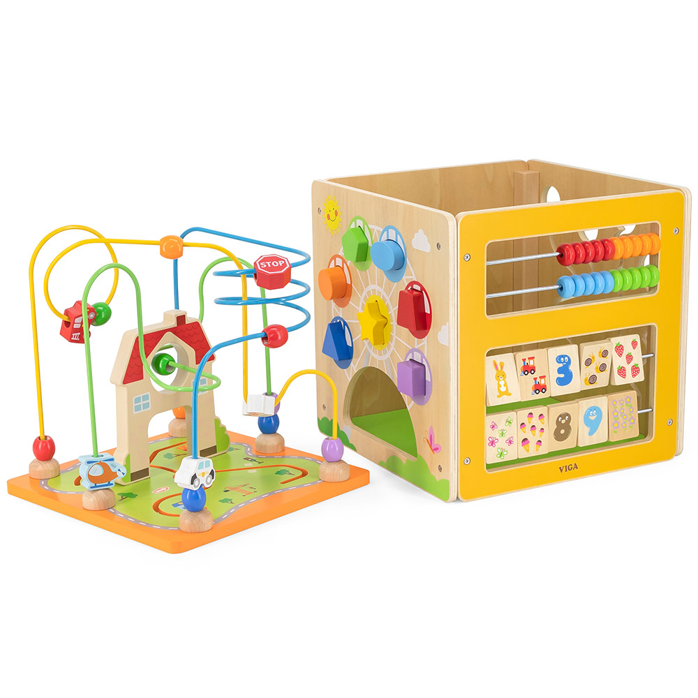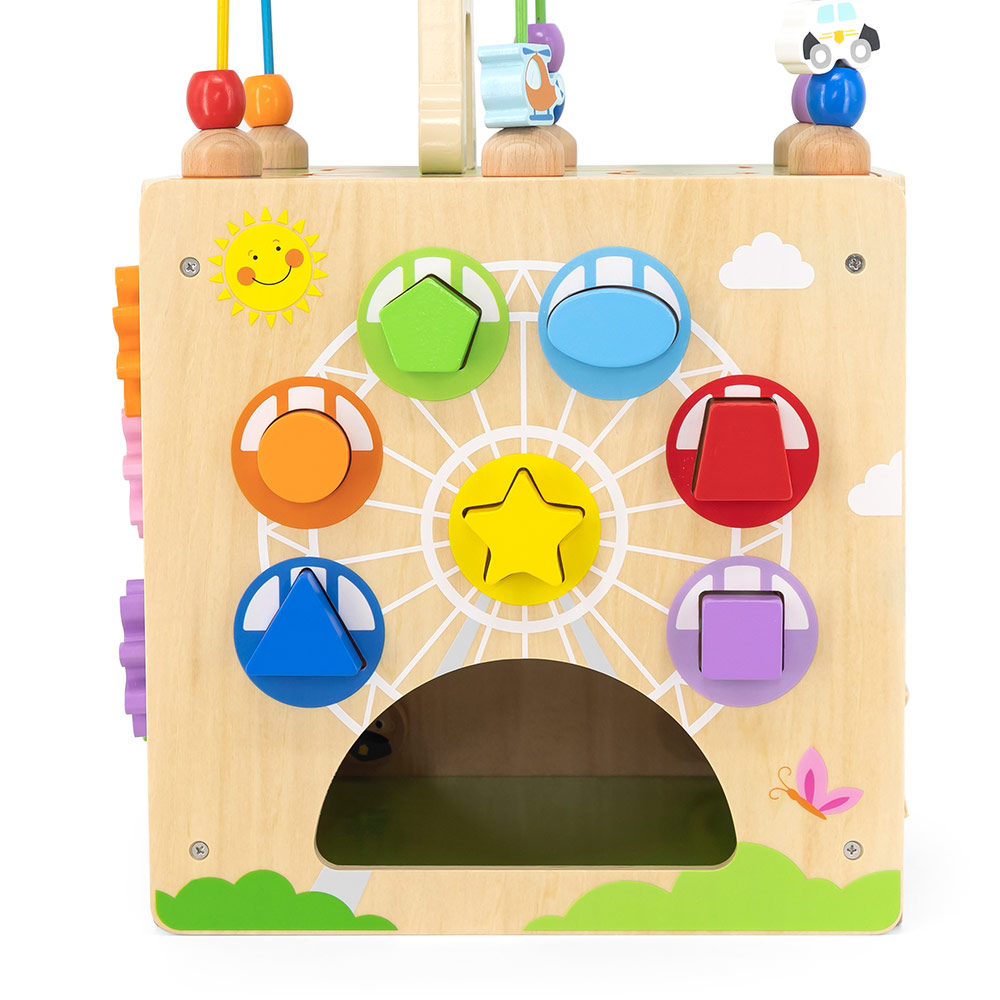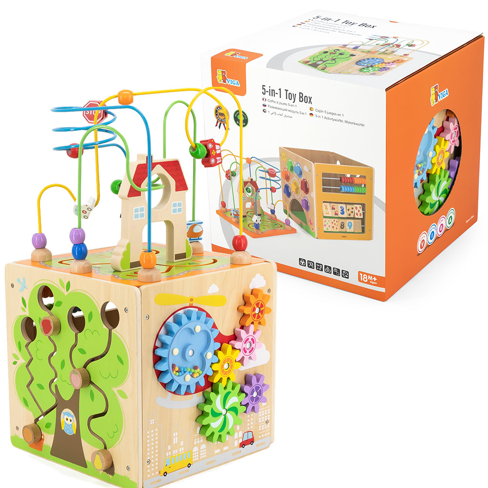 Viga Activity kocka 5u1 je drveno edukativno igračko centar sa pet različitih igara u jednom. Pružite svojoj deci zabavu i edukaciju uz ovu multifunkcionalnu aktiviti kutiju.