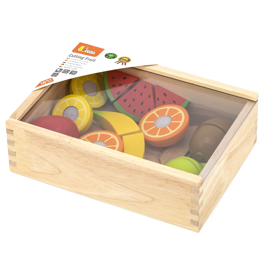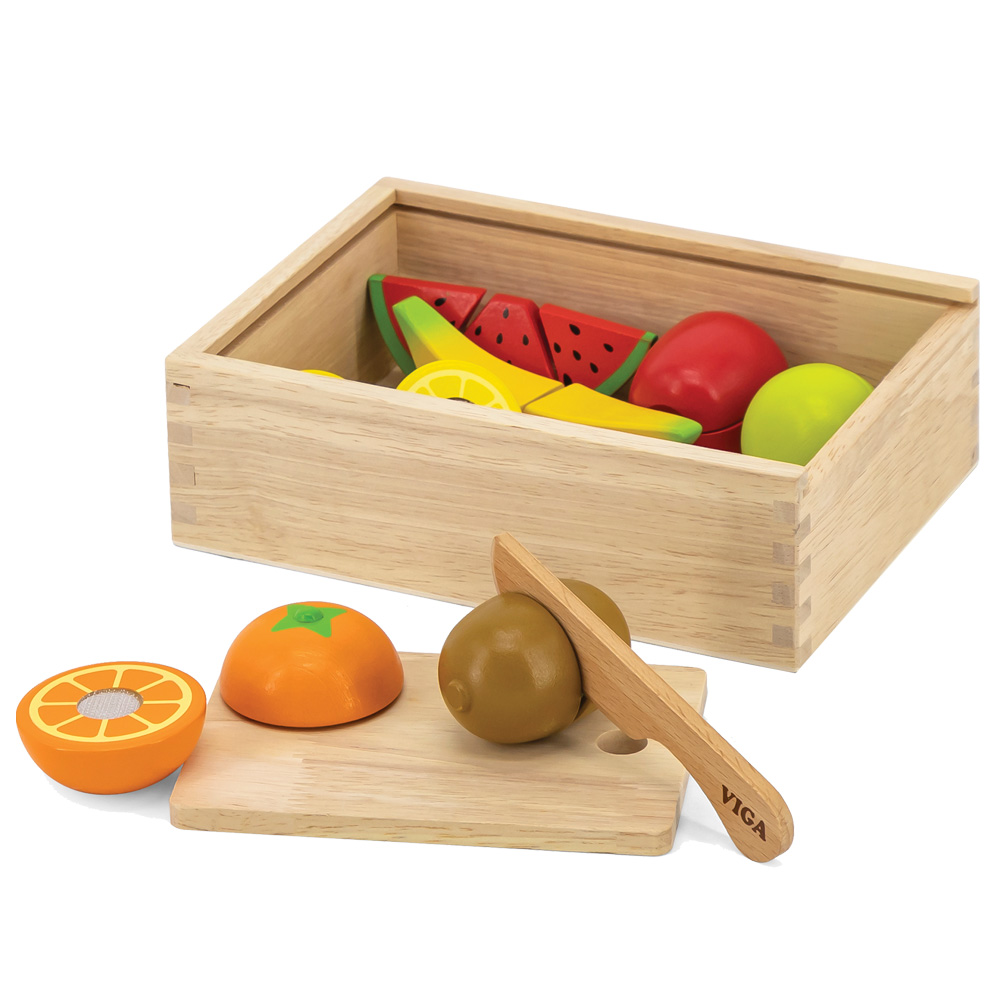 Viga ,,Seckamo voće” – Da li znate kako da napravite voćni desert od drvenih elemenata? Da biste to uradili, treba vam malo mašte i proizvod kompanije Viga Toys ,,Seckamo voće za decu uzrasta od 18 meseci. Komplet uključuje drveni nož, dasku za rezanje i čitavu kolekciju edukativnih igračaka u obliku voća: lubenice, jabuke, kruške, banane, šljive, pomorandže, limuna. Većina voća može se podeliti na delove, a zatim povezati pomoću tekstilnog zatvarača (čičak).