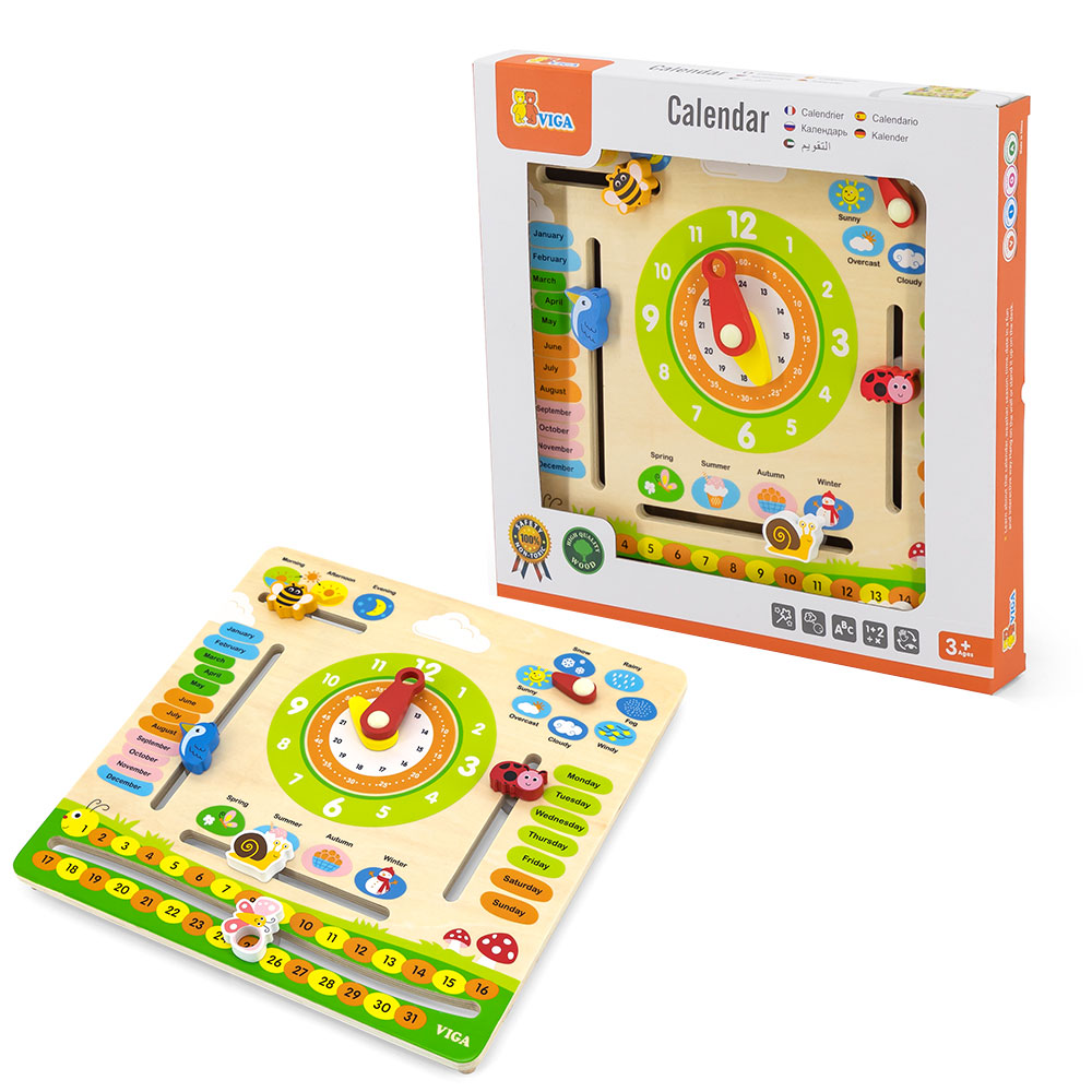 Pomerite elemente u obliku životinja kako biste istražili različite karakteristike kalendara: doba dana, dan u nedelji, mesec u godini, godišnje doba i datum. Mali crveni točkić može se koristiti za označavanje vrste vremena, dok brojčanik sata omogućava deci da prate tačno vreme. Ovaj fantastični drveni set pruža deci priliku da uče o danima u nedelji, mesecima u godini i još mnogo toga. Set uključuje klizni mesečni i dnevni grafikon, brojčanik za vremensku prognozu, kao i sat sa pokretnim kazaljkama, što ga čini savršenim alatom za razvijanje razumevanja vremena kroz igru