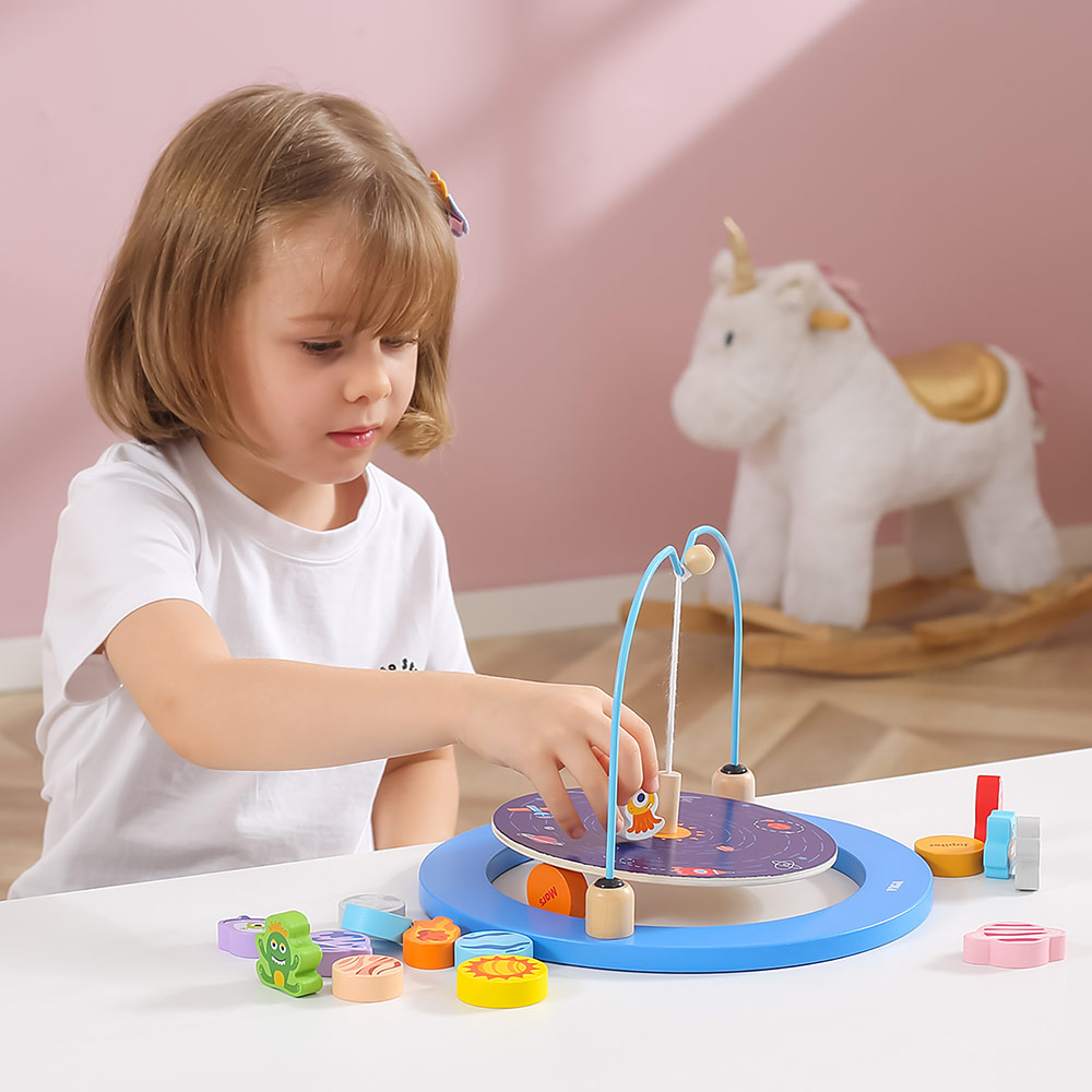 Viga drvena edukativna igra ravnoteže Svemir je savršena igra koja kombinuje zabavu i učenje. Ova igra je dizajnirana da pomogne deci u razvoju svojih motoričkih sposobnosti i koncentracije na kreativan i interaktivan način.