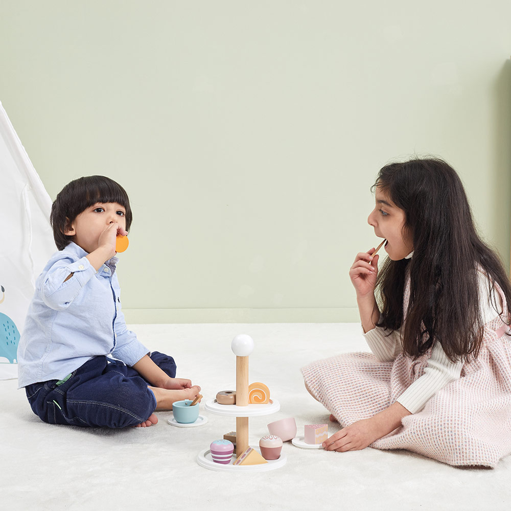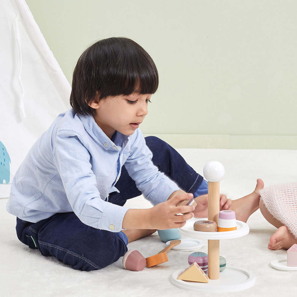 Set sadrži 15 šarenih i detaljno izrađenih delova, uključujući kolače, šoljice za kafu i dodatke za posluživanje. Deca će imati priliku da pripremaju svoje poslastice, kombinuju sastojke i poslužuju ih svojim prijateljima ili porodici. Ovaj set ne samo da će unaprediti motoričke veštine i koordinaciju oka i ruke, već će podstaći i maštovitu i kreativnu igru kod dece. Dimenzije pakovanja: 18.5*18.5*27 cm , Preporučeni uzrast: 18+ meseci