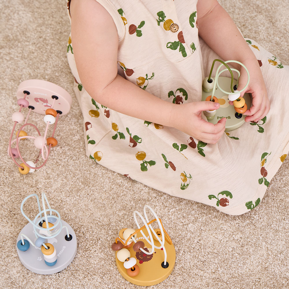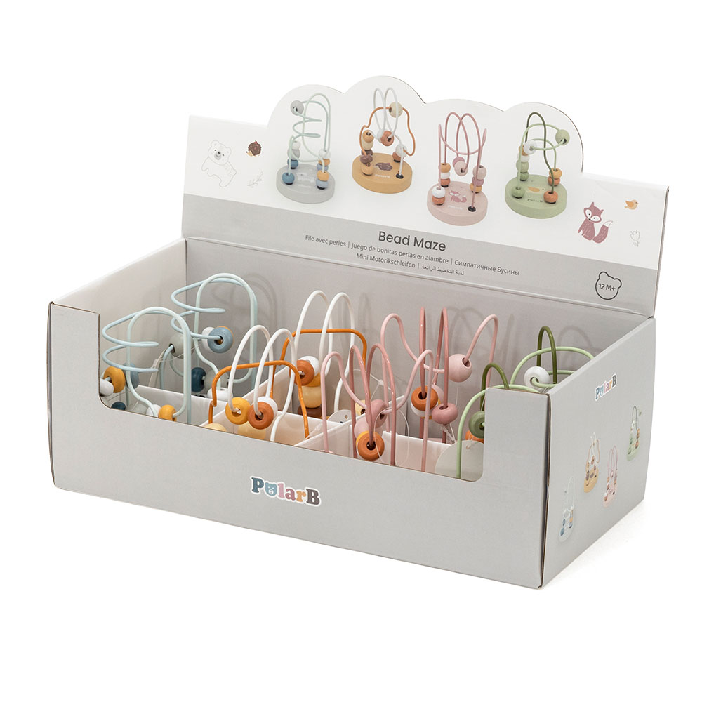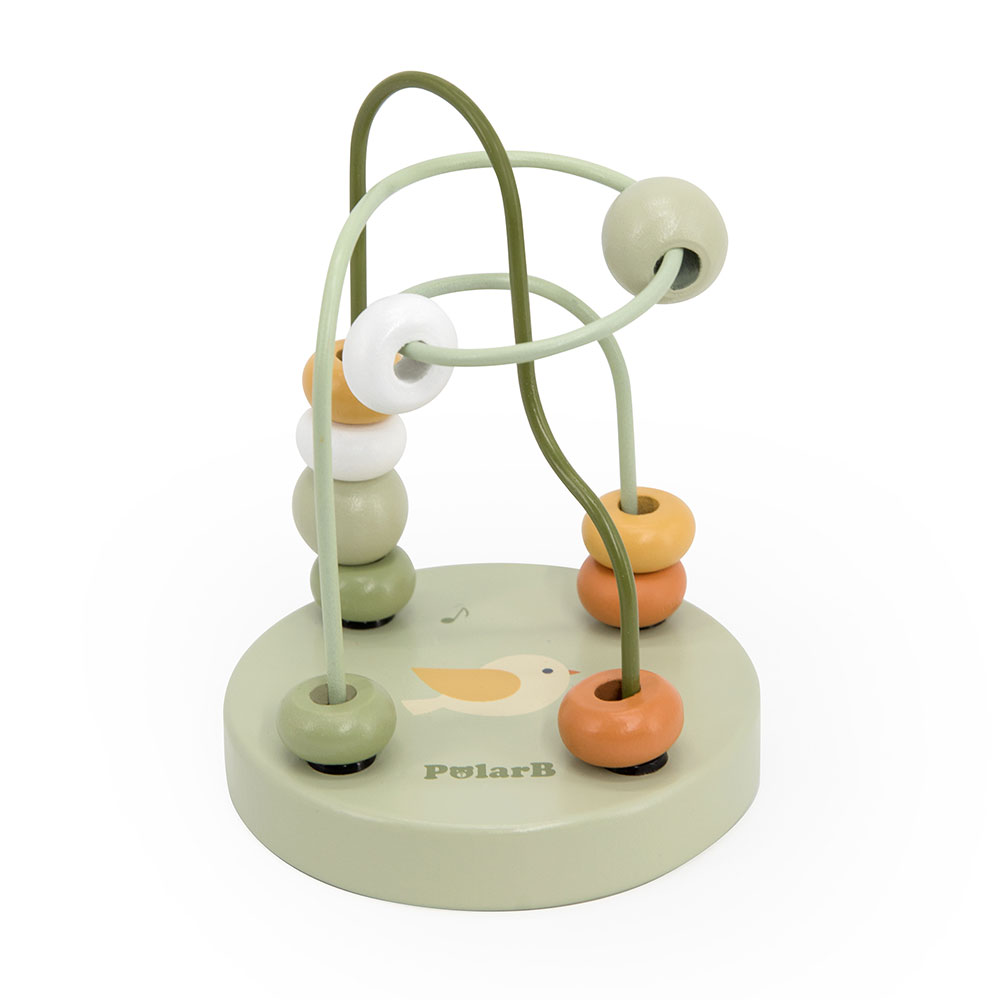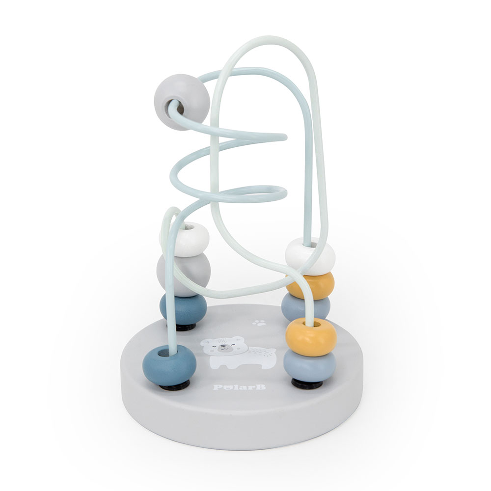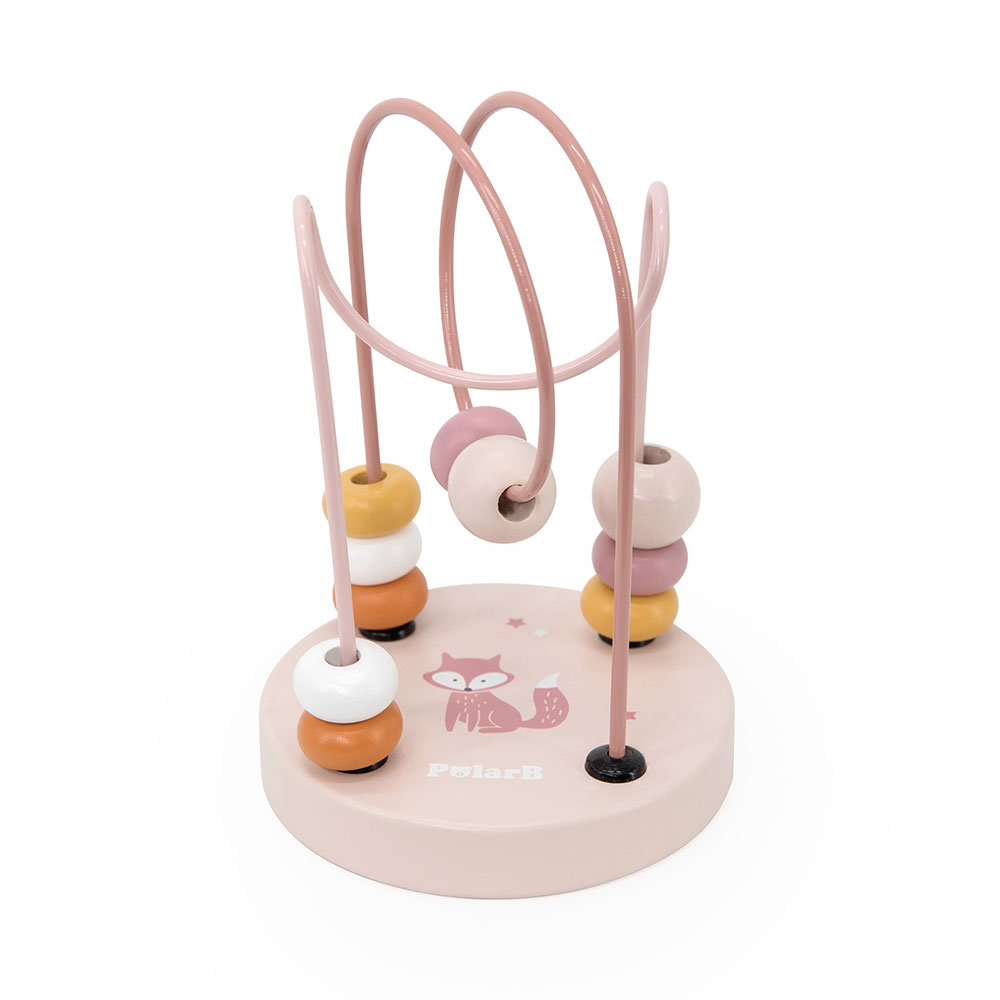 Drveni rolerkoster pastelnih boja koji će deca obožavati! Provlačeći perle kroz zakrivljene cevi, dete mora da pravi odgovarajuće pokrete kako bi uspešno pomerilo elemete i naa taj način razvija spretnost i preciznost. Na postolju rolerkostera nalazi se slika jedne životinje – slon, lisica, ptica ili polarni meda.