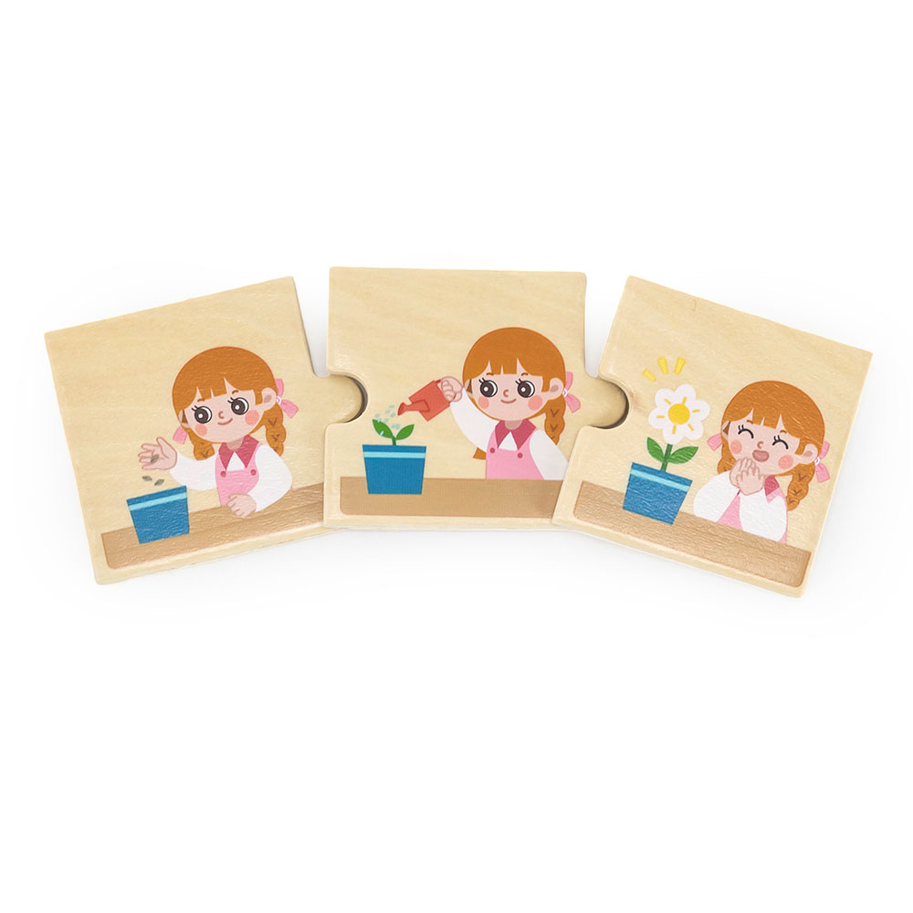 Cilj ove edukativne igre je spojiti tri dela slagalice kako biste formirali logički niz sa ilustrovanim dnevnim aktivnostima, poput pranja ruku, pranja zuba, zalivanja cveća i mnogih drugih. Kroz ovu igru, deca se uče o važnim svakodnevnim rutinama na zabavan i interaktivan način. Svaki deo slagalice je dizajniran tako da pomogne deci da razumeju redosled aktivnosti, razvijajući njihovu sposobnost razmišljanja, pamćenja i organizacije.