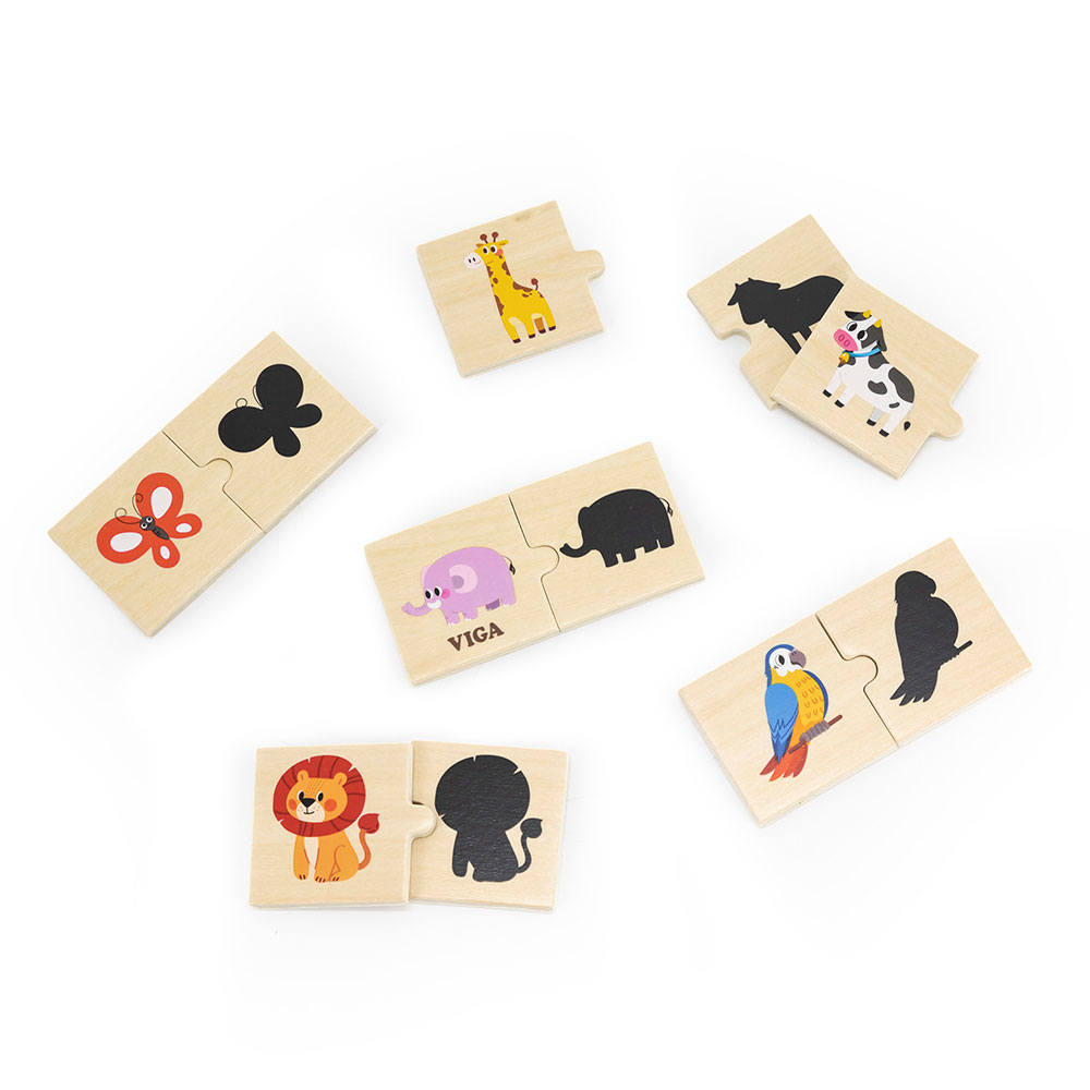Drvene slagalice sa ilustracijama životinja i njihovim siluetama pružaju zabavnu i edukativnu igru. Cilj igre je upariti svih 24 elementa i pronaći siluete koje odgovaraju stvarnim izgledima životinja. Ova igra razvija fine motoričke sposobnosti, kao i maštu kod dece, podstičući ih na pažljivo razmišljanje i prepoznavanje oblika. Izrađena od visokokvalitetnog drveta, igra je sigurni i dugotrajan izbor za mališane koji žele da se zabavljaju i uče kroz igru.