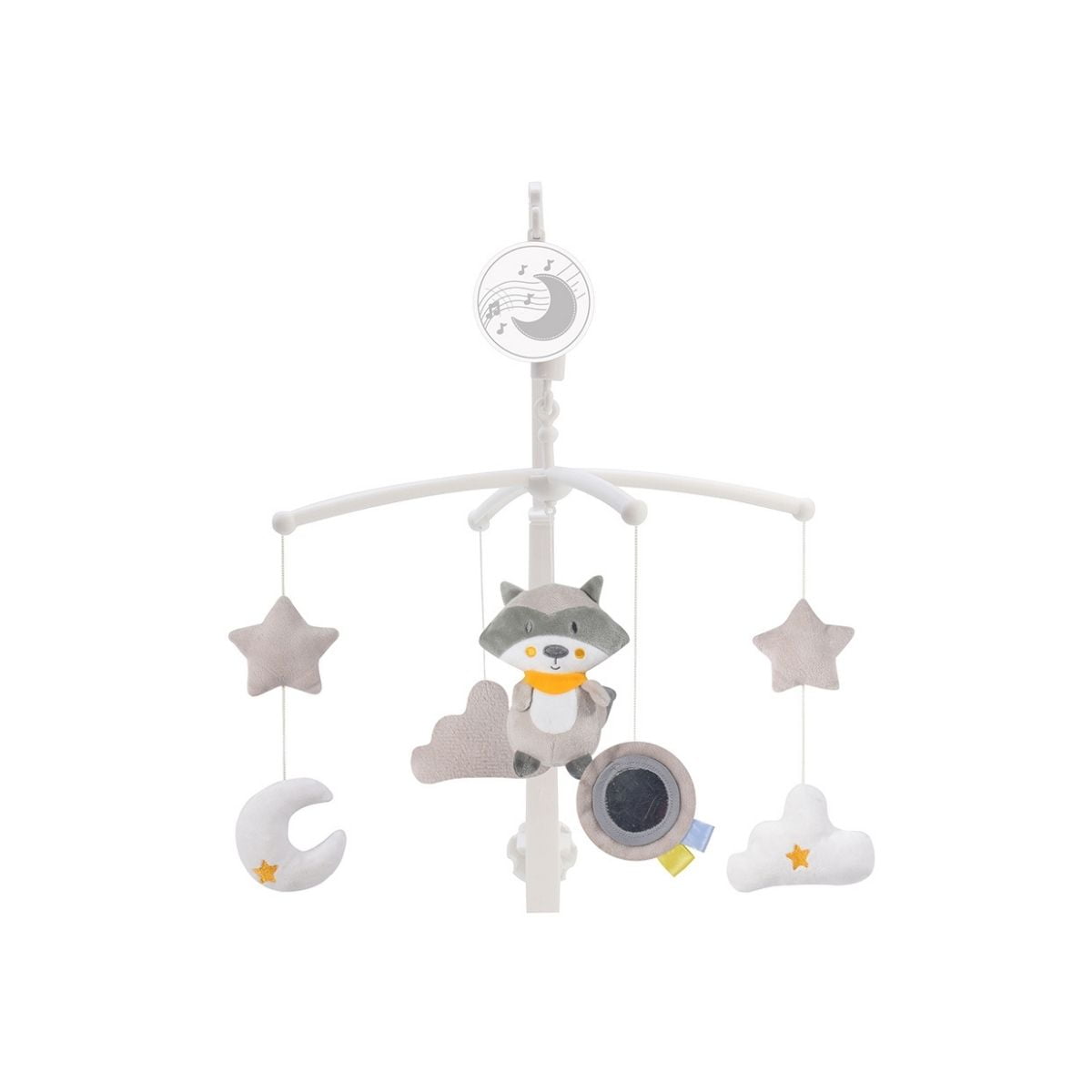 Vreme je za prelepe snove. Muzička vrteška za bebe sa mekanim igračkama u obliku meseca, zvezda i oblaka. Sadrži umirijuće melodije i laganim okretanjem igračaka podstaćiće razvoj bebine percepcije sveta oko sebe.