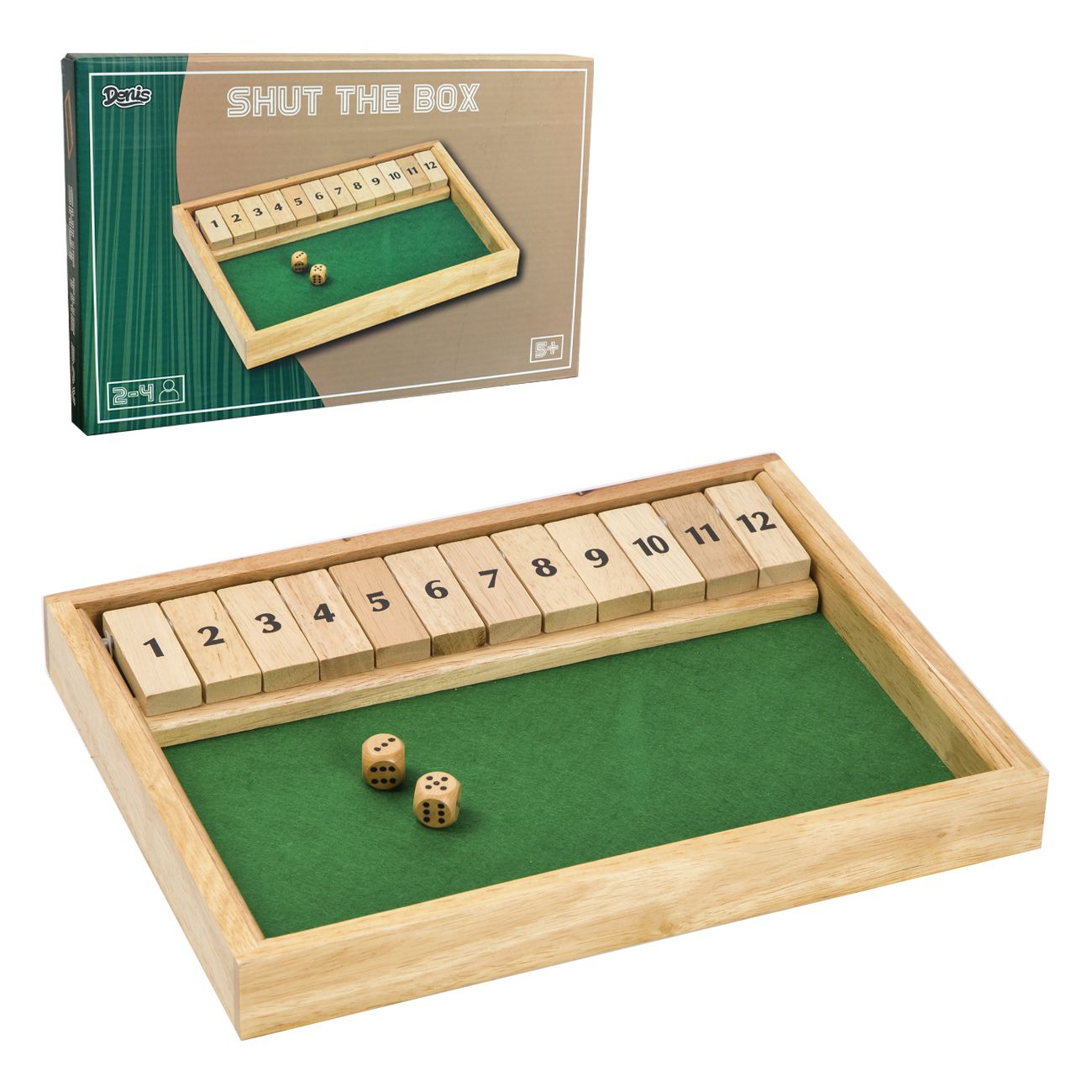 Shut the box-Zatvori kutiju je brza i uzbudljiva društvena igra sa kockicama pogodna za 2-4 igrača. Tradicionalno se igra u anglofonskim zemljama u pabovima i poznata je po tome što je veoma popularna igra sa elementima slučajnosti, kombinatorike i strategije. Za mališane će biti zanimljiv edukativni karakter igre, jer se računske operacije obilato koriste, što će mališanima svakako dobro poslužiti za učvršćivanje znanja iz matematike i učenje kroz igru. Ukratko, igra za sve generacije koja pruža sate dobre zabave! Karakteristike: Drvena igra Shut the bok – 1 stranica sa 12 brojeva za igru. Pogodno za 2-4 igrača. Društvena strateška igra na sreću sa brojevima i kockicama. Materijal: drvo. Uputstva za igru. Dimenzije: 28,2 x 18 x 3,5 cm. Preporučeni uzrast: 5+.