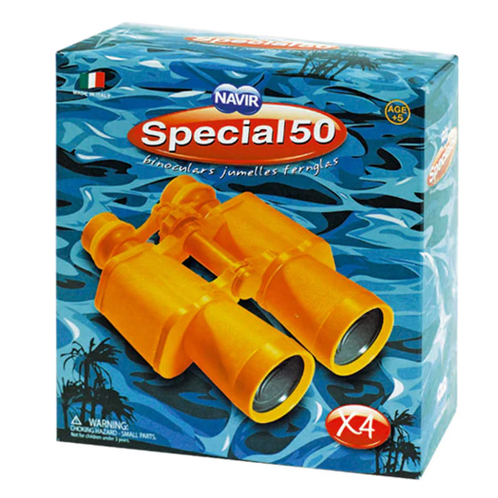 Navir Žuti dvogled od ABS plastike. Isporučuje se sa futrolom, kaiševima za vrat i poklopcem sočiva