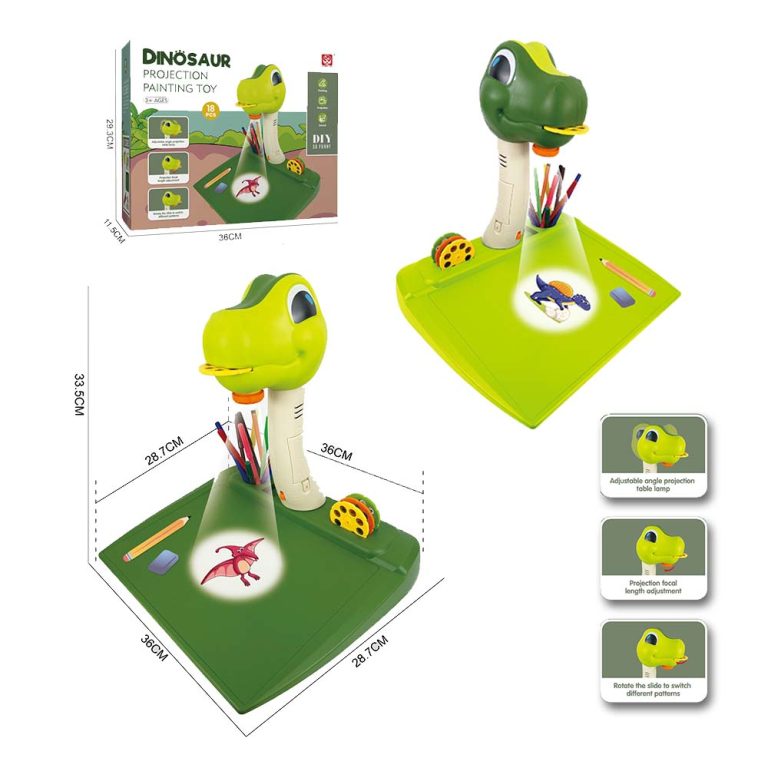 Zabavni dino-projektor pretvara crtanje u igru! Uključi lampu, projektuj sliku na papir i pomoću šablona jednostavno je isprati i nacrtati.
