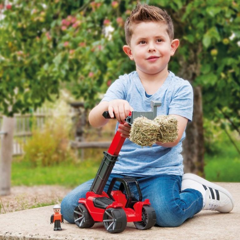 2.149,00 RSDTeleskopski utovarivač LENA TRUXX sa gumom na točkovima, osovinama od pocinkovanog čelika 4 mm, kabinom vozača , 2-stepenom podiznom rukom koja se može produžiti do 34 cm, viljuškom koja se može zakačiti na ručku, kukom za prikolicu i LENA® igračkom
