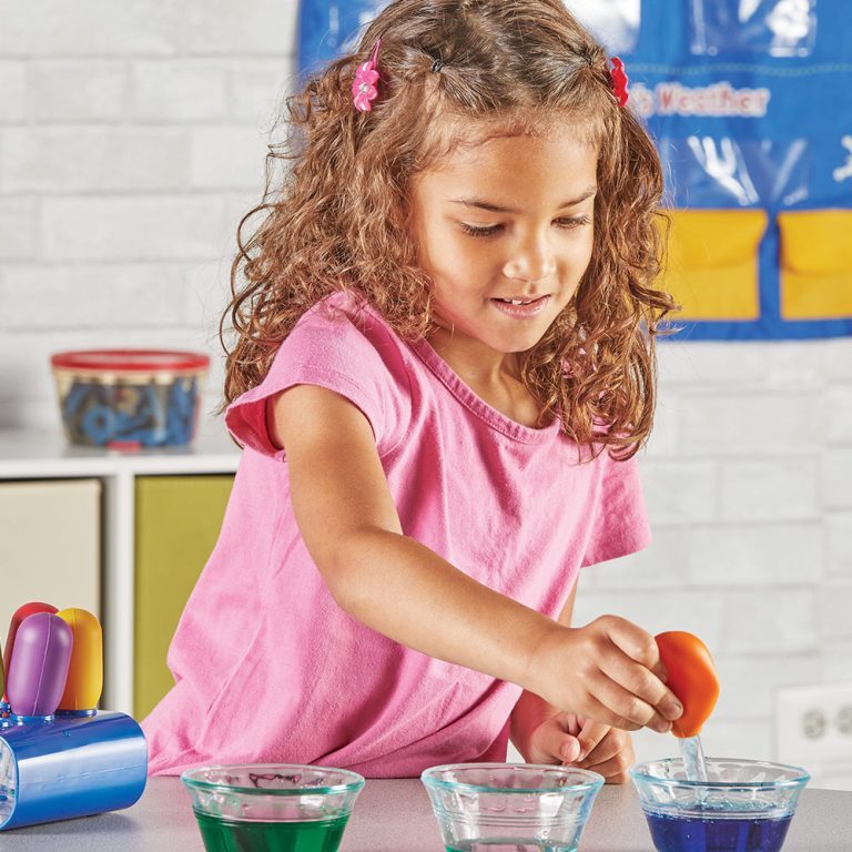 Mali naučnici sada mogu da uživaju u ogledima i eksperimentima sa velikim istraživačkim pipetama, baš kao da su u laboratoriji. Pipete koje se lako koriste će podstaći eksperimentisanje sa zapreminom i uočavanjem uzrok-posledica, kao i razvoj finih motoričkih veština dok stiskaju i puštaju tečnost iz pipete.
